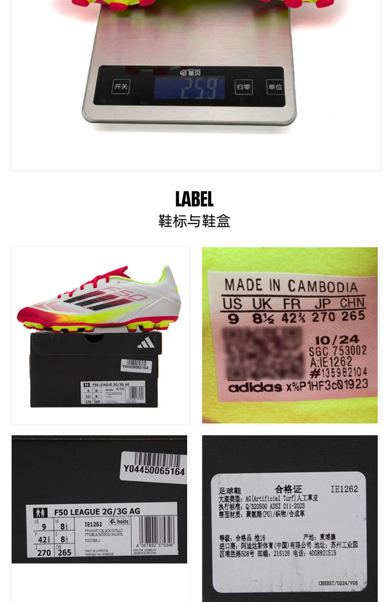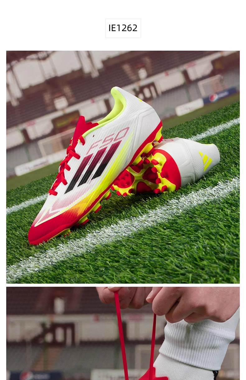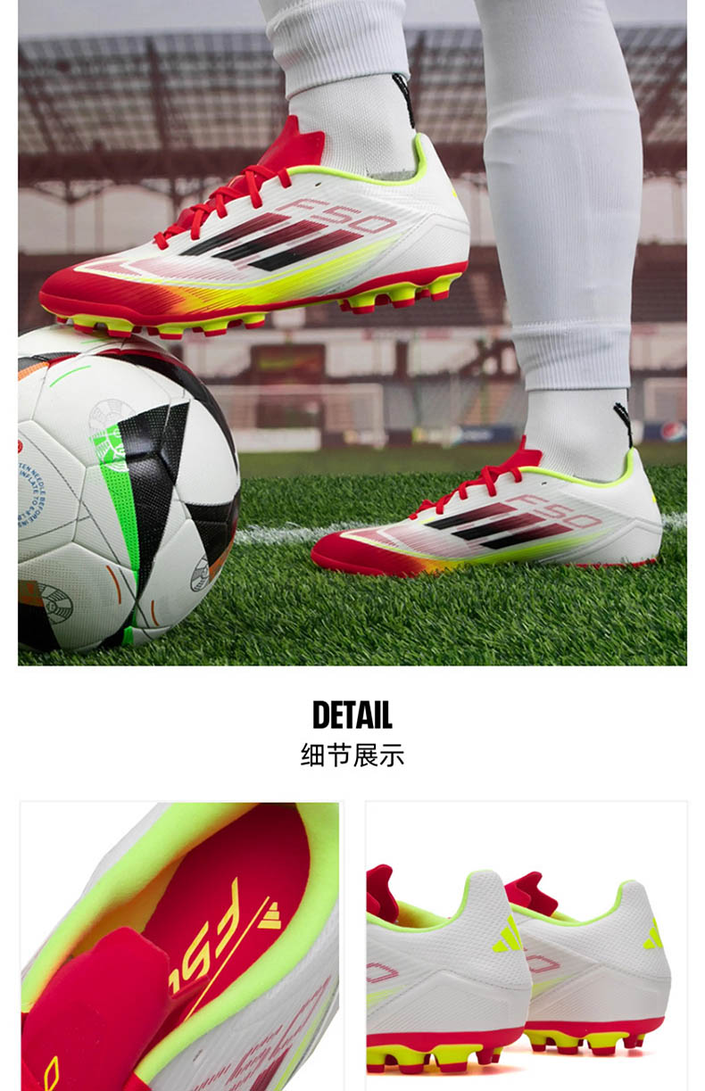 ADIDAS阿迪达斯 F50 LEAGUE 男足球鞋 AG钉鞋 IE1262 白/黑色/亮黄荧光 包裹性强 抓地力强