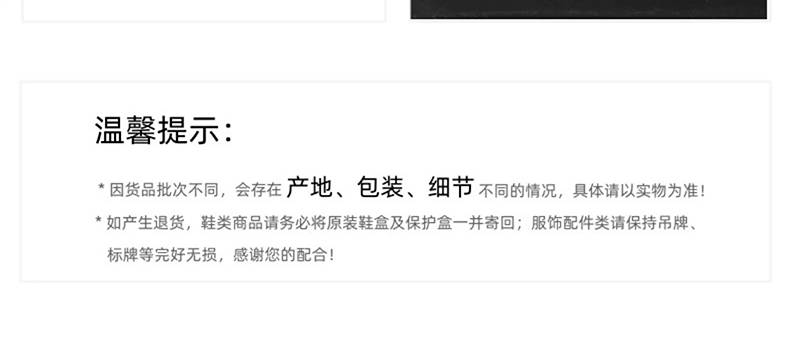 1)鞋类商品遵循国家三包规定。在质保期内,商品正常使用中出现质量问题,经鉴定,客户可以选择维修、换新或退货。