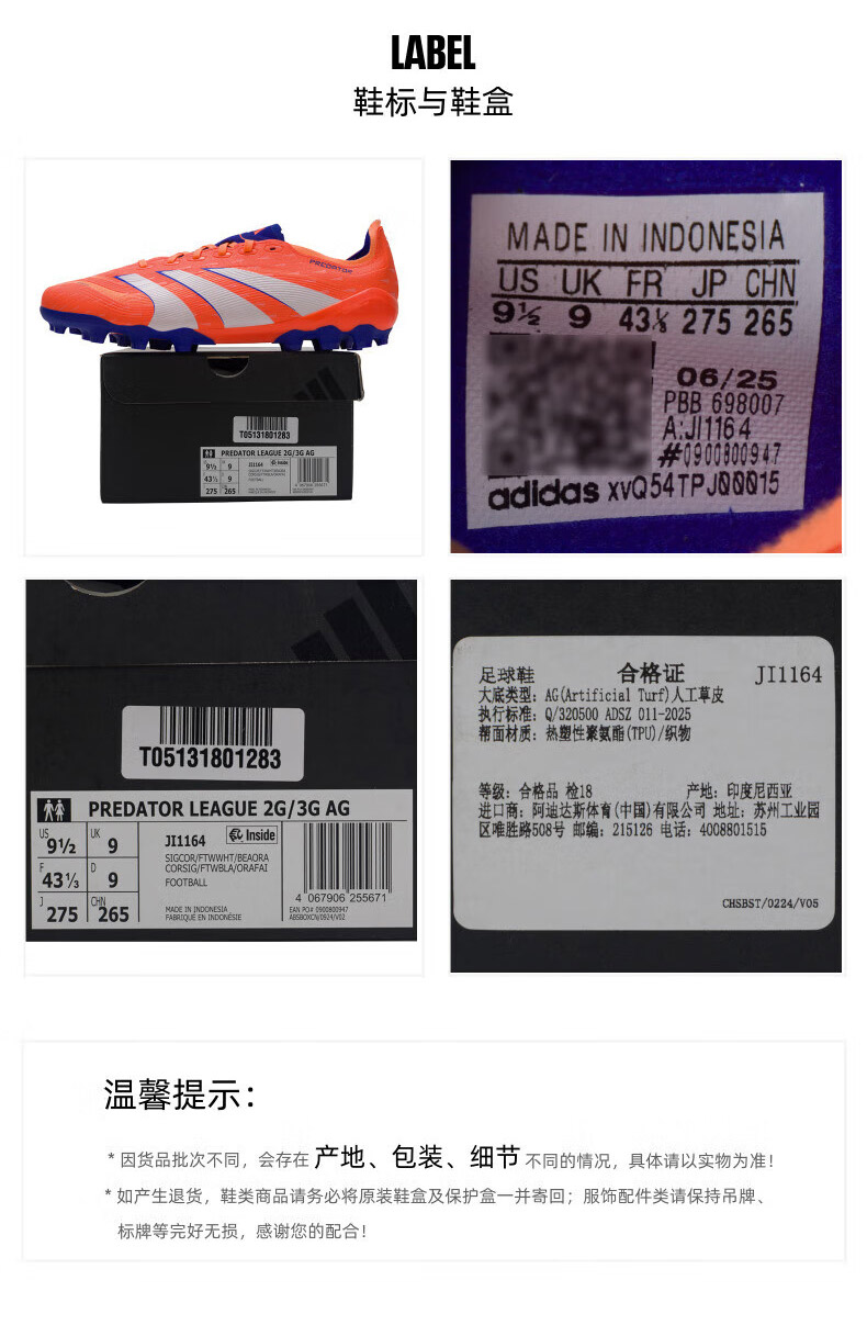 ADIDAS阿迪达斯 猎鹰2G/3G 中国版 中端AG 男足球鞋 JI1164粉白橙 包裹性强 抓地力强