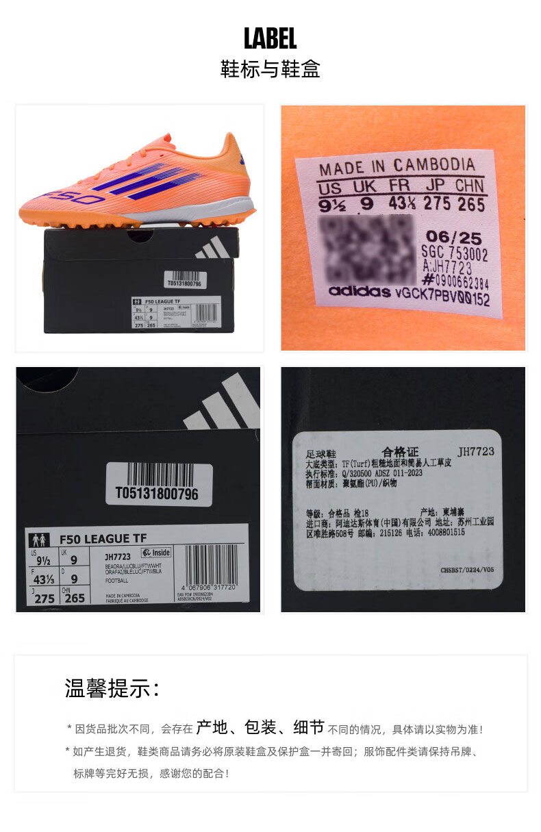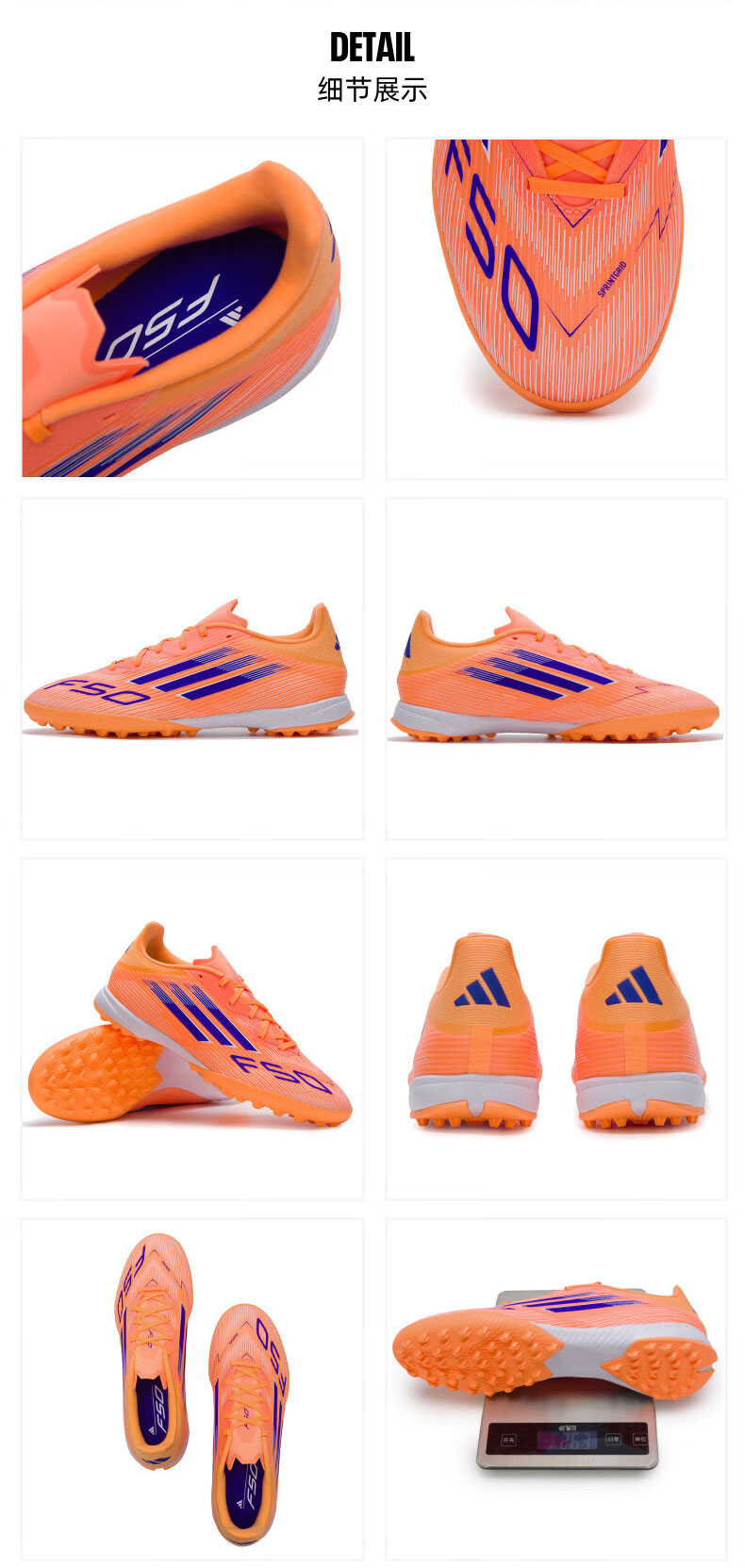 ADIDAS阿迪达斯 F50 League 足球鞋TF钉鞋 JH7723 橙色/亮蓝色/白色 抓地力强 脚感舒适