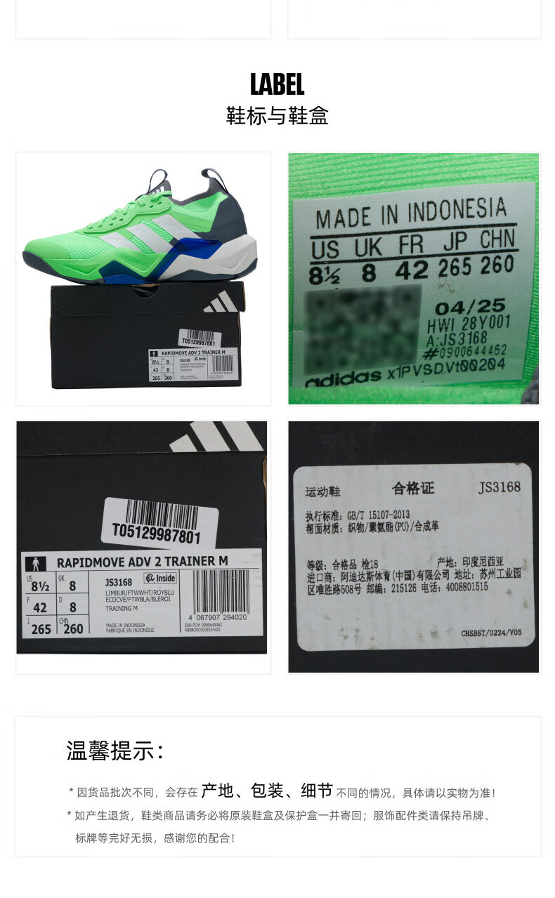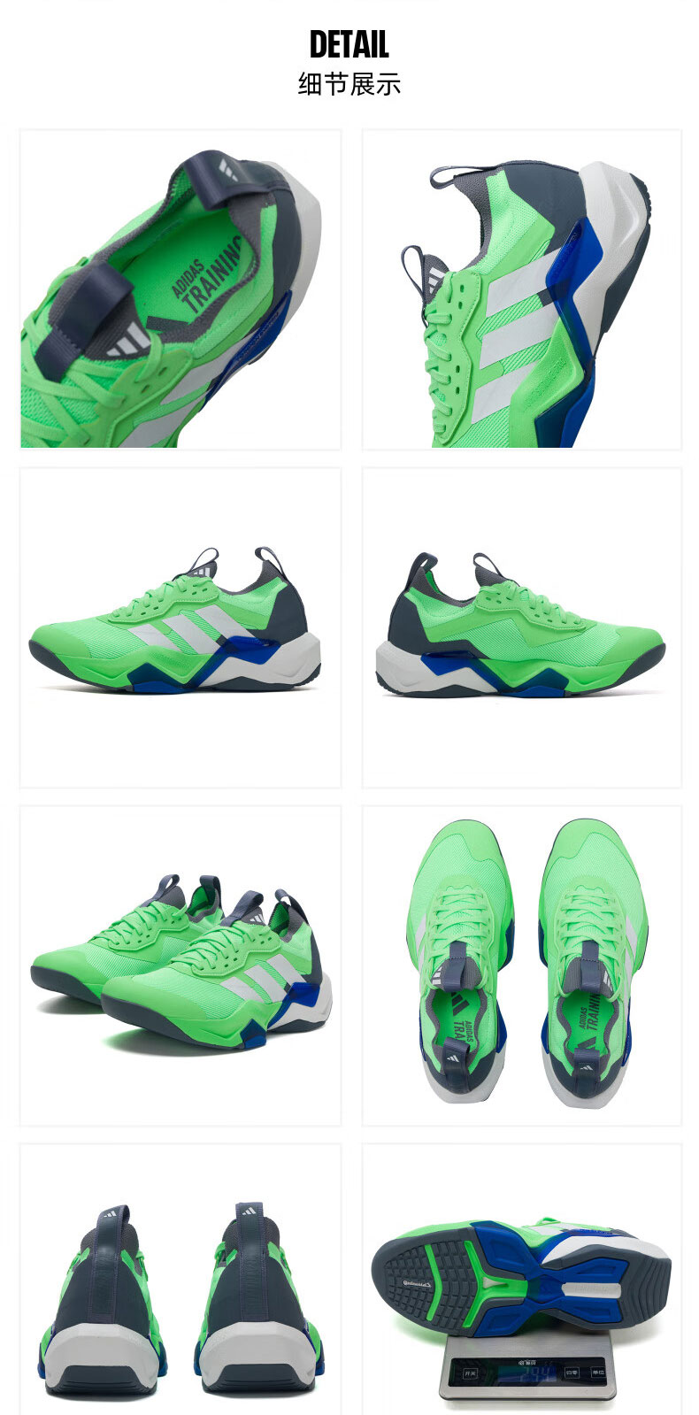 ADIDAS阿迪达斯 RAPIDMOVE ADV 2 TRAINER 篮球训练鞋 JS3168 魔力酸橙绿/白色/皇家蓝 包裹性强 回弹缓震
