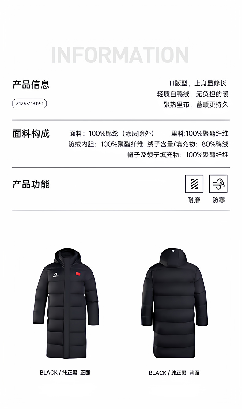 冬季新品硬核保暖!多重防风设计 + YKK 拉链锁温,鸭绒填充搭配过膝长度,从脖颈暖到脚踝,运动通勤全场景适配;寒冷天的 “保命级” 新品刚需!