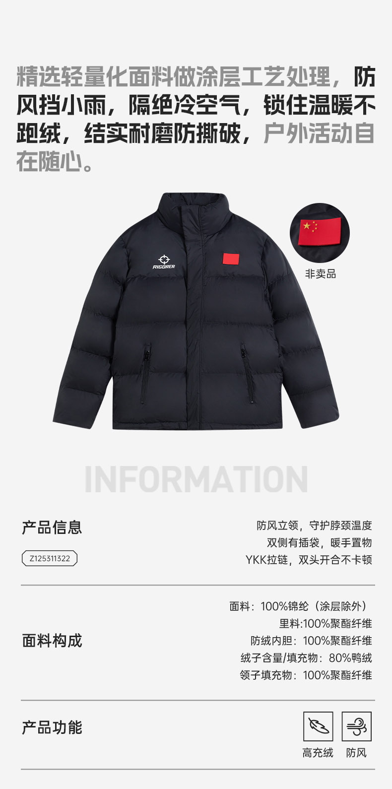 新品利落款来袭!高充绒量快速锁温,立领设计显精神不臃肿,双侧插袋 + 顺滑拉链细节拉满,健身、日常穿都有型;花小钱 get 新款保暖神器!