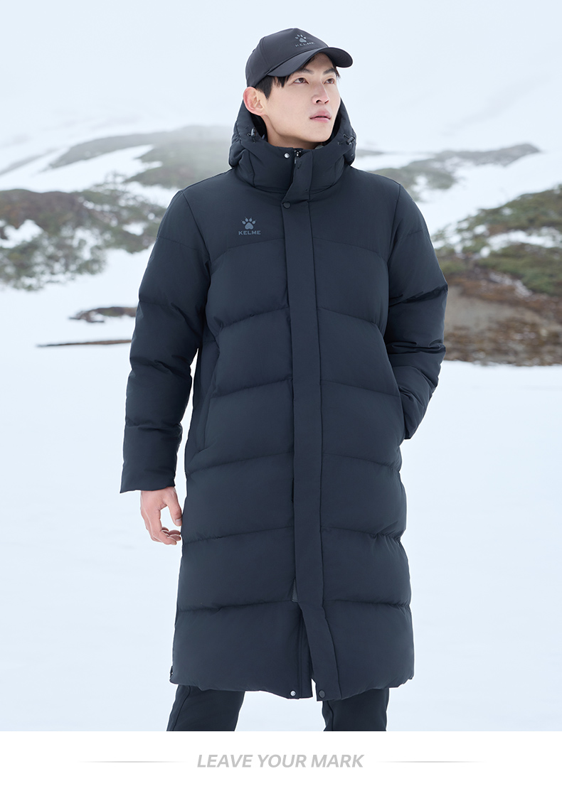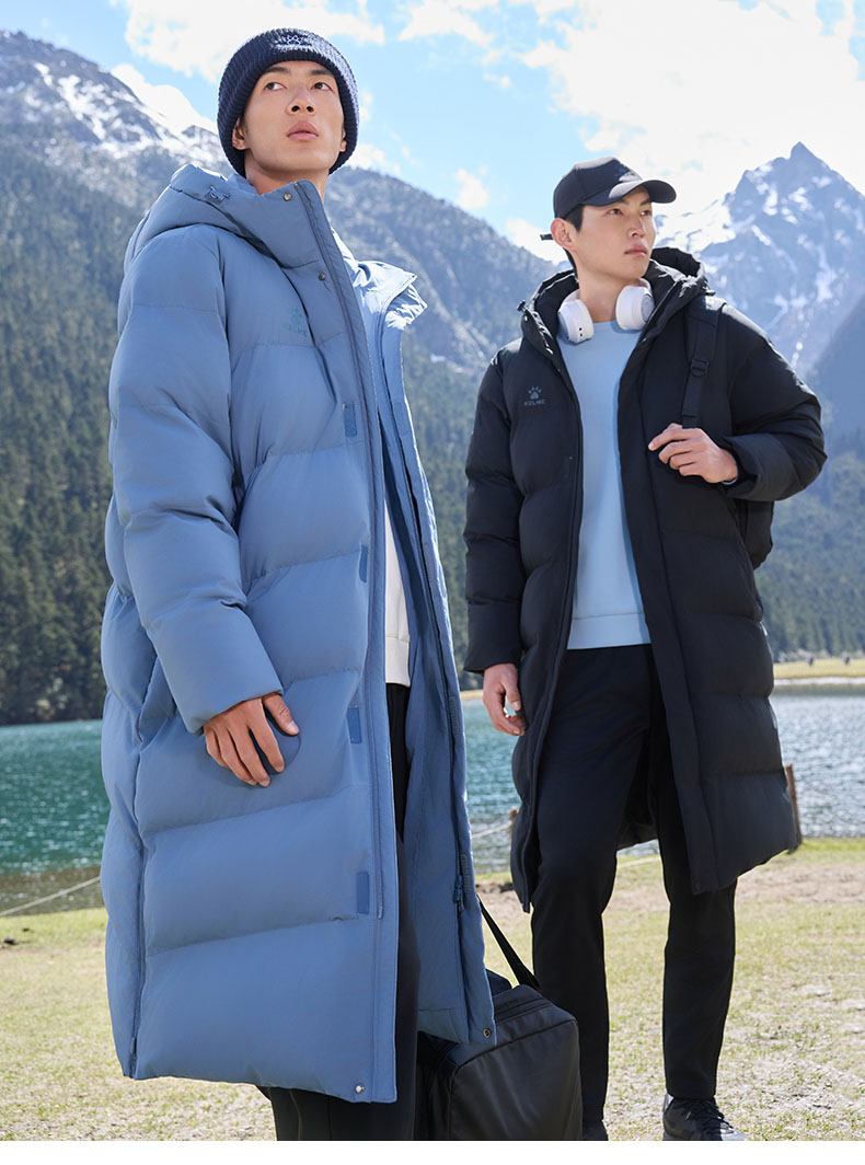 KELME卡尔美 男长款过膝羽绒服 冬季体育生训练服 8561YR1049 471 蓝灰 加厚保暖 有型不臃肿