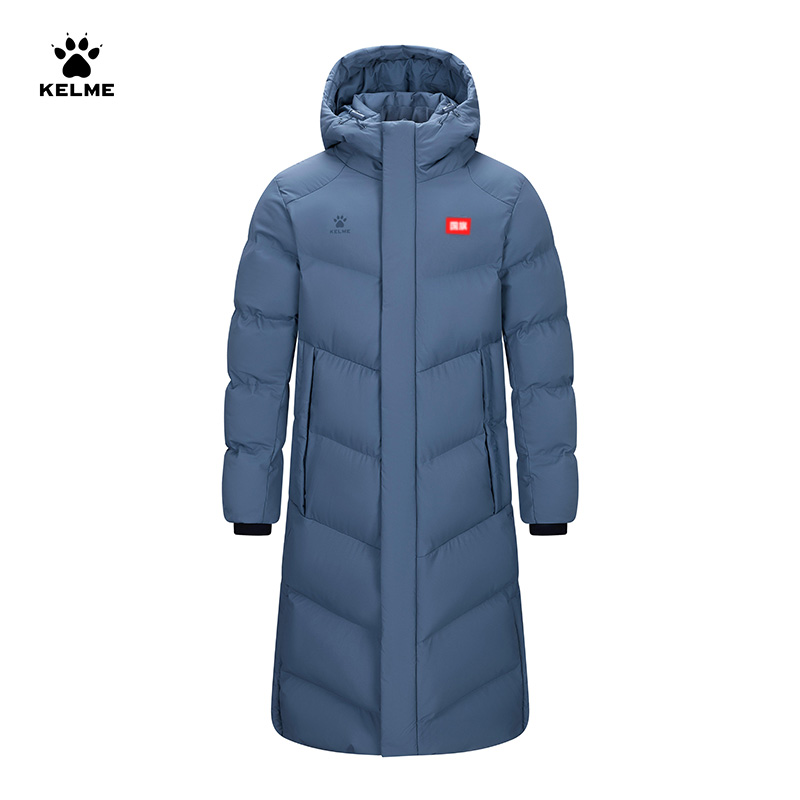 KELME卡尔美 长款棉服 国旗系列 体育生冬季训练服 8561MF1037 471 蓝灰 防风保暖 抵御严寒