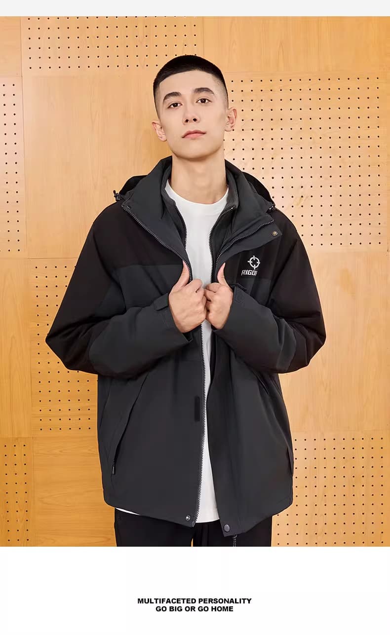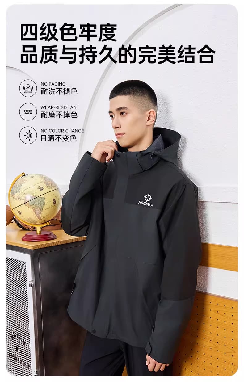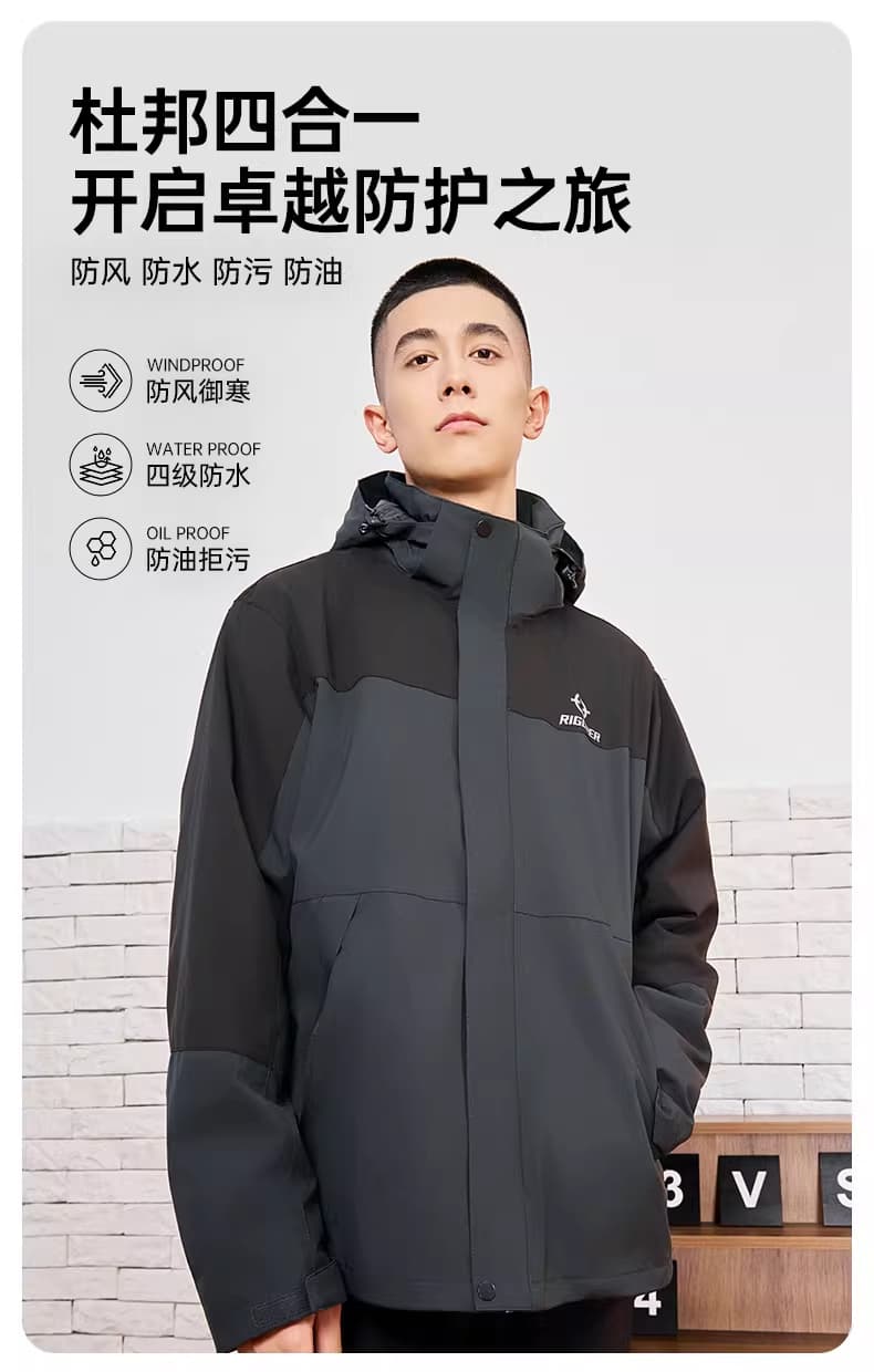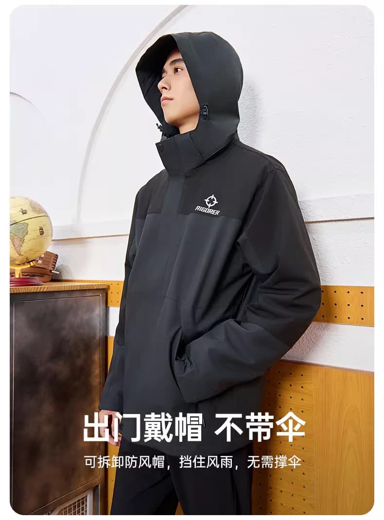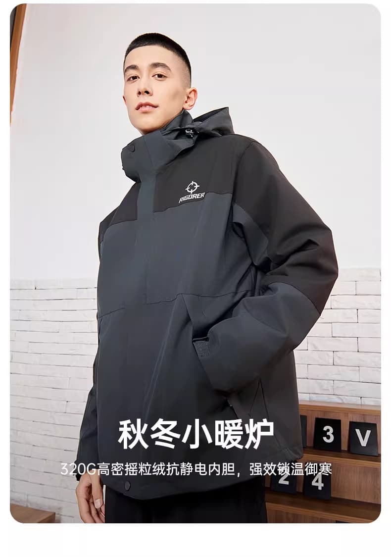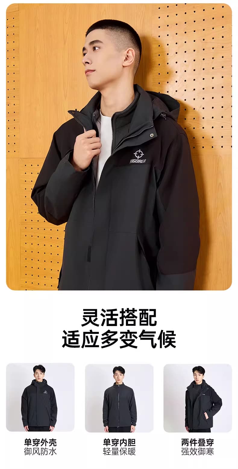 准者 三合一双层夹克男女同款户外冲锋衣双层夹克上衣外套防风保暖防水 Z124310913 岩石灰