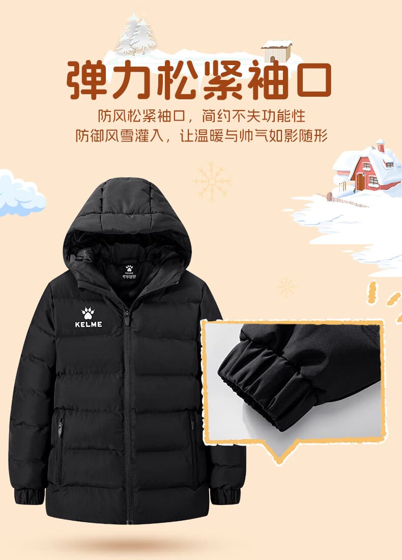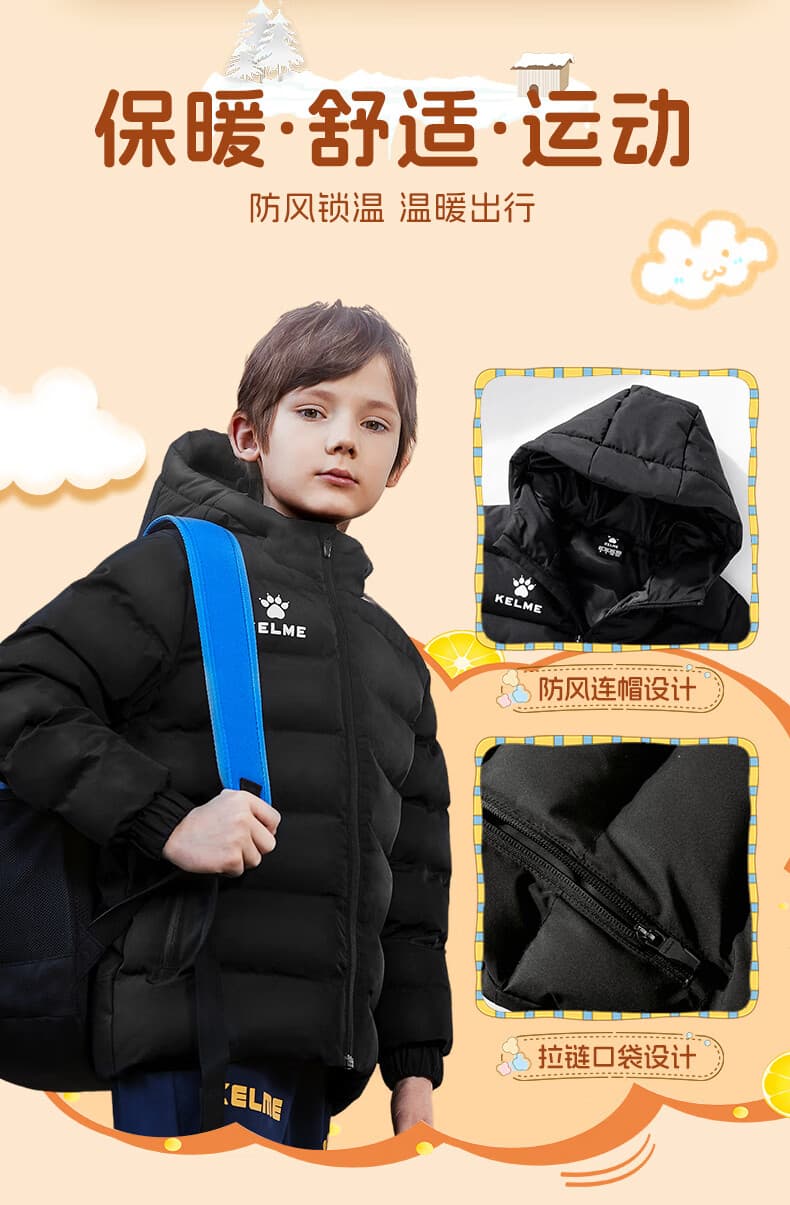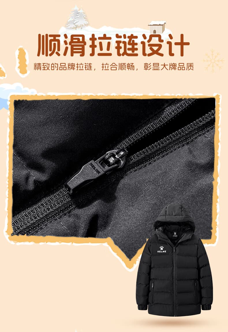 轻盈保暖不束缚动作,连帽设计可抵御户外寒风