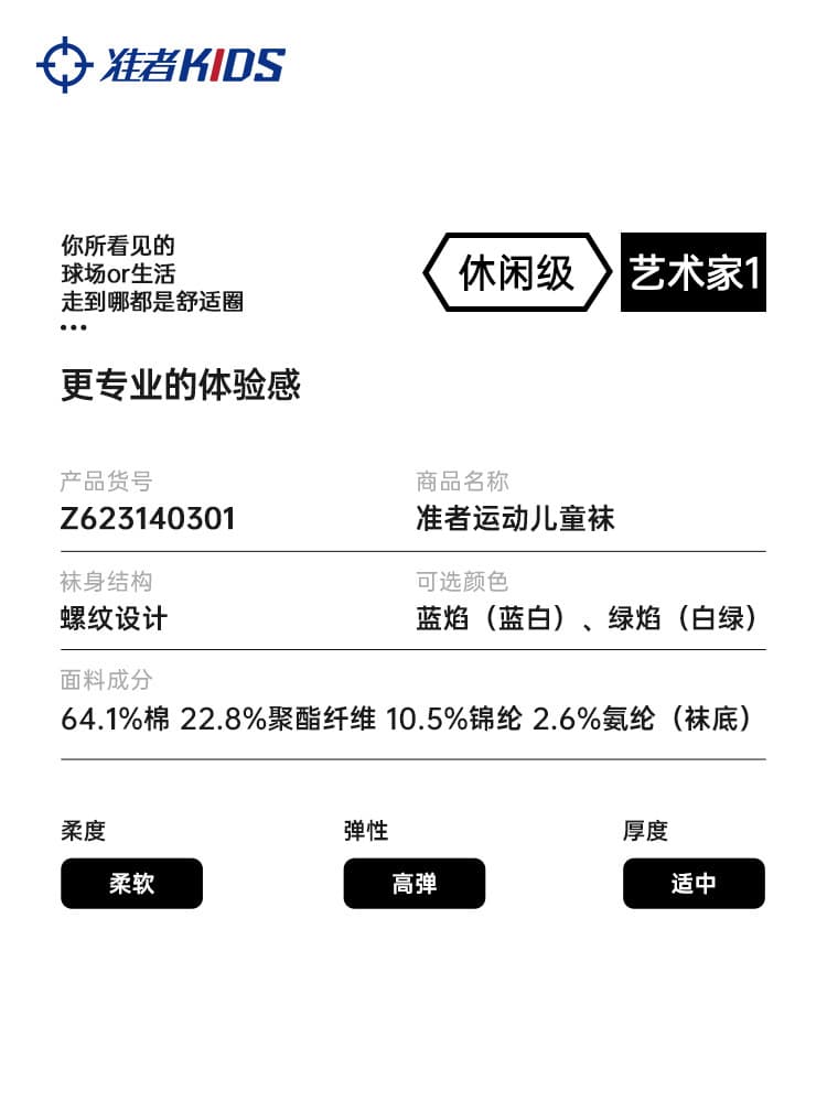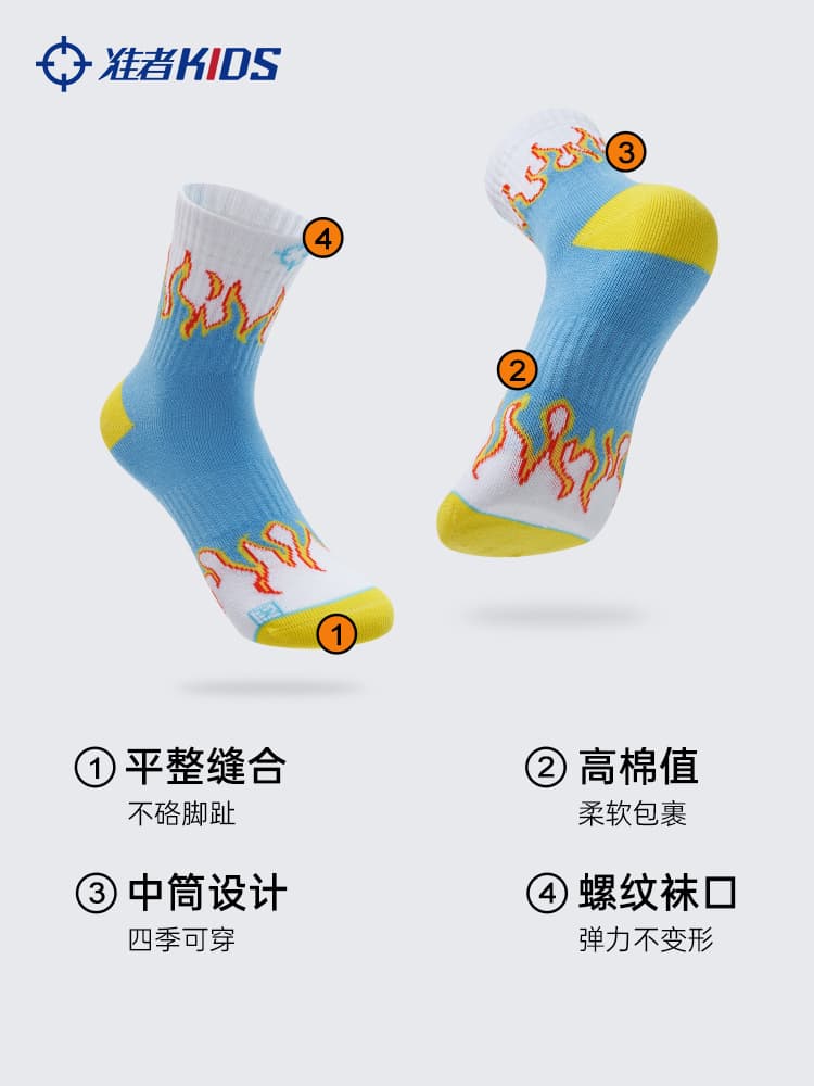 KIDS准者儿童篮球袜专业训练实战防滑跑步袜莱卡面料抗菌防臭运动袜子准者儿童中筒袜 Z623140301 蓝焰(蓝白)