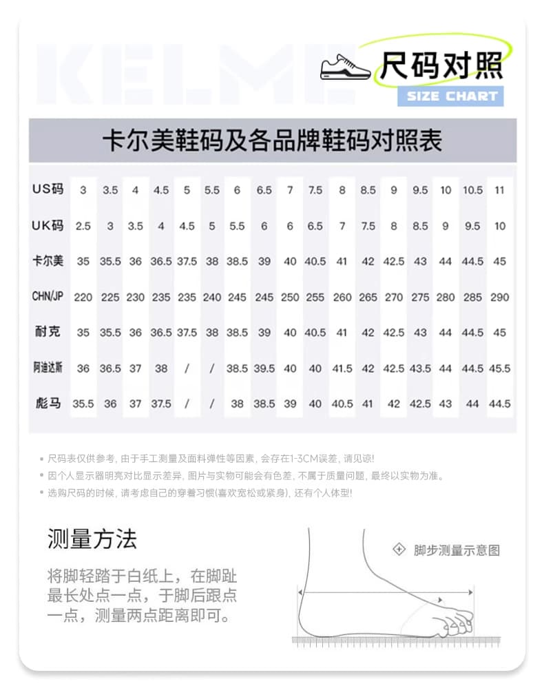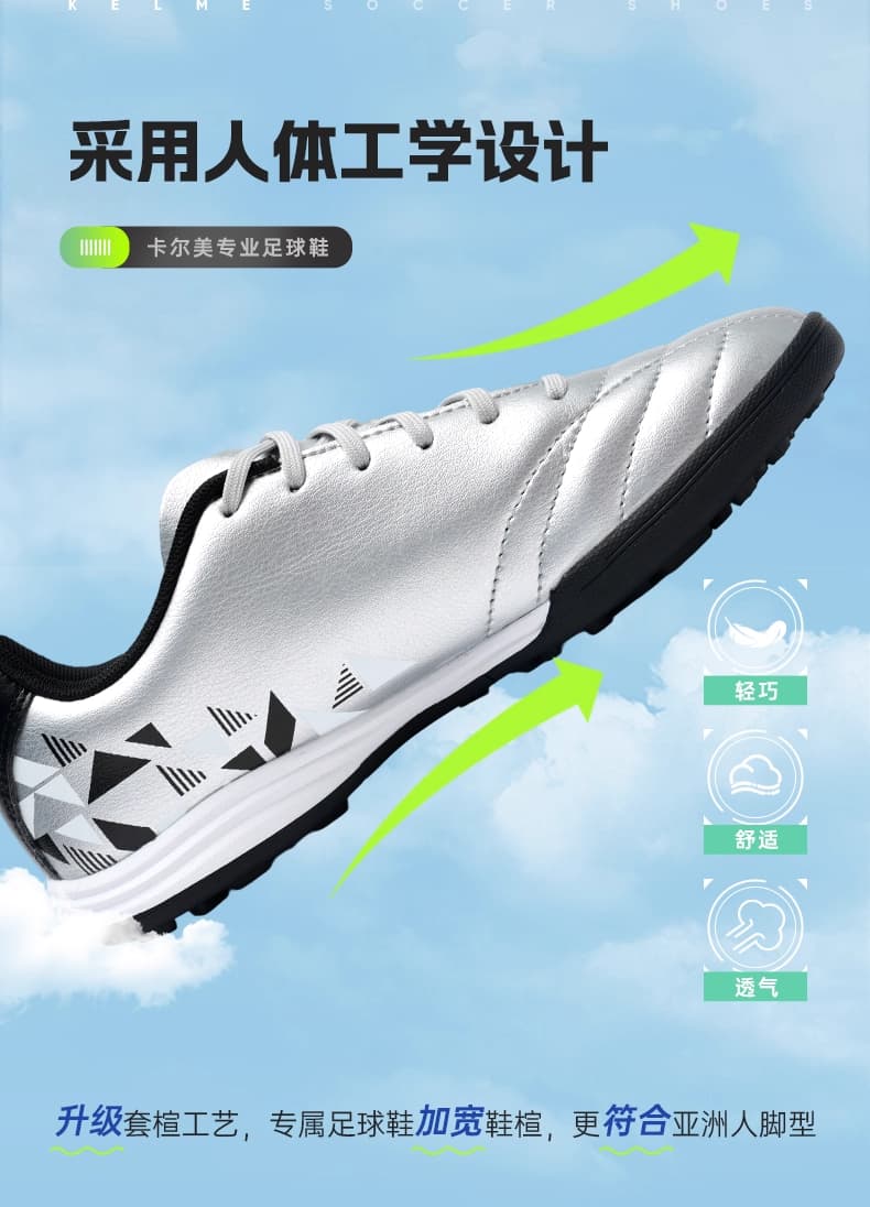 卡尔美足球鞋 tf碎钉成人青少年儿童小学生防滑训练专业比赛鞋 8531ZX3389 白紫 全掌TF碎钉 橡胶大底,助你蓄力能量 灵动自如掌控赛场节奏!