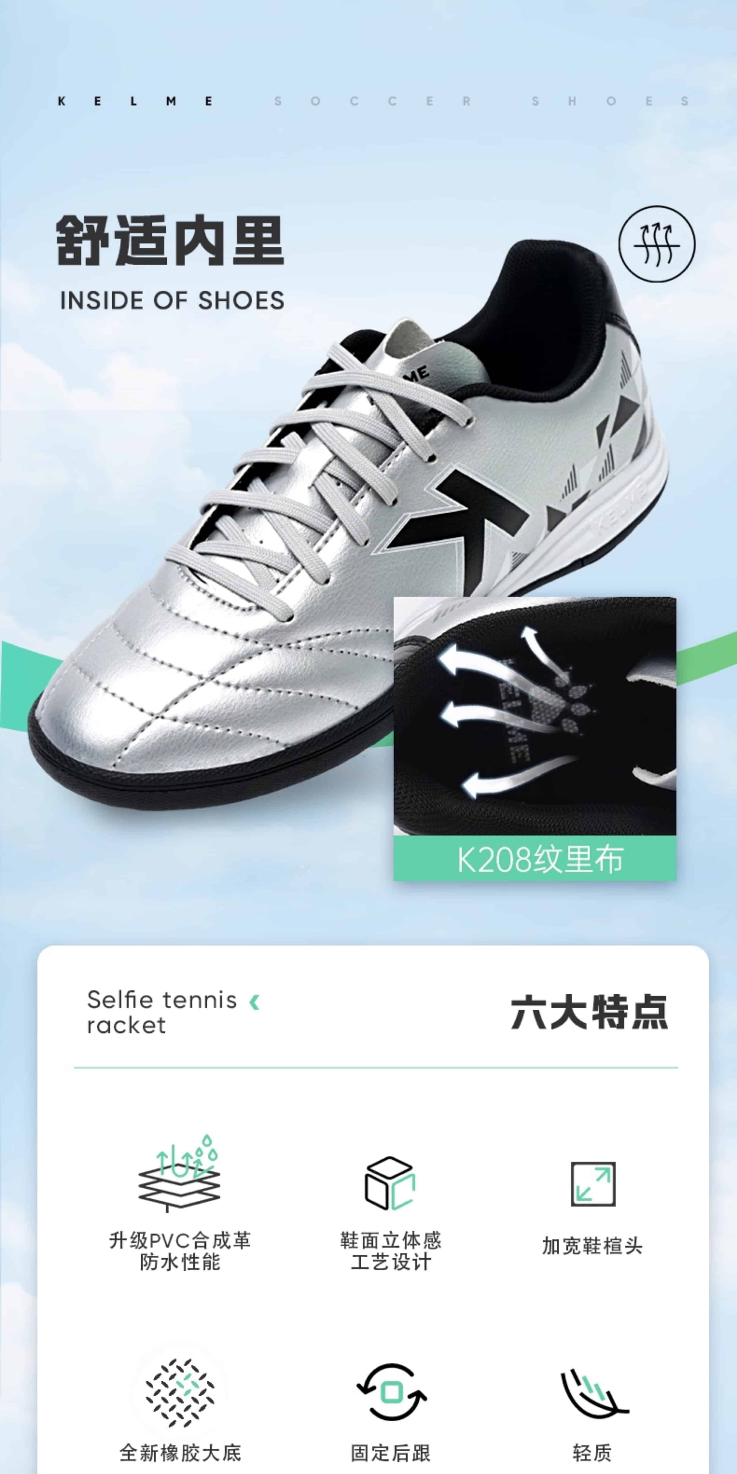专属足球鞋加宽鞋楦,更符合亚洲人脚型。
