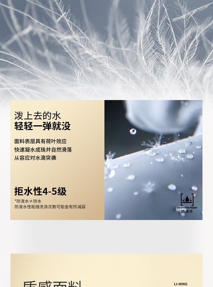 防泼水面料抵御雨雪,保持羽绒干燥。