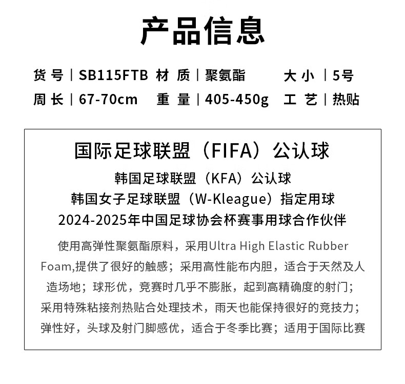 世达star足球 SB115FTB 国际足协公认足球5号大型比赛用球热贴合足球 世达5000系列 国际足球联盟(FIFA)公认球 防滑耐磨