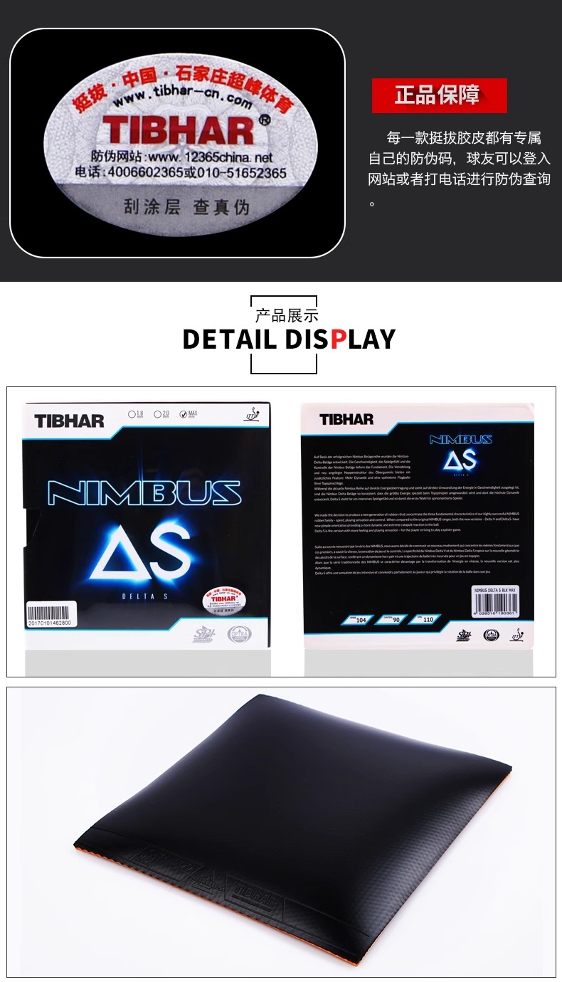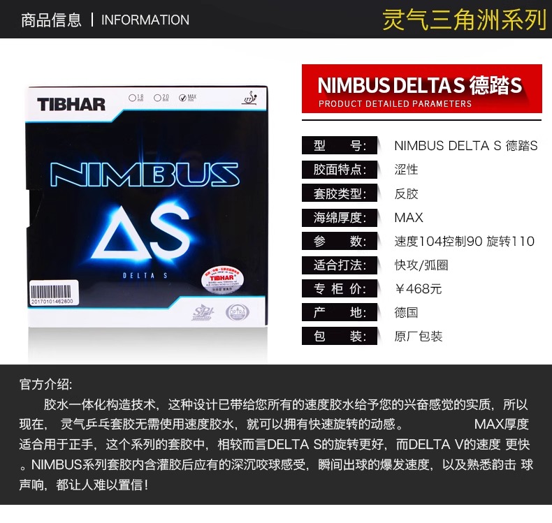 挺拔TIBHAR NIMBUS DELTA S 德踏S乒乓套胶 基本信息: