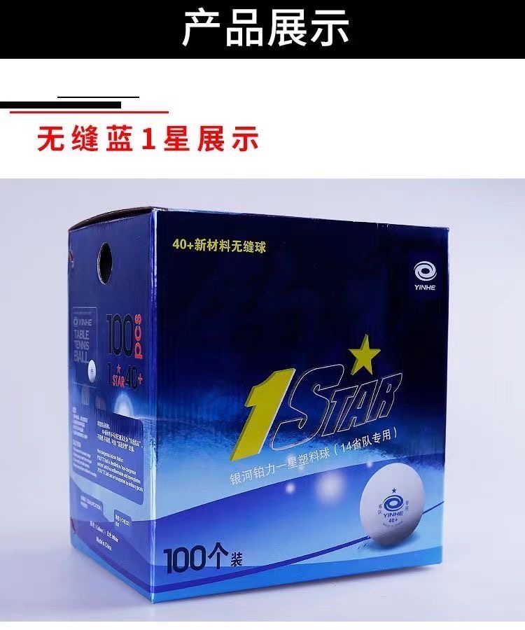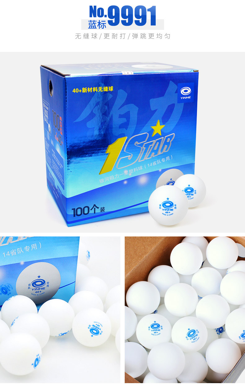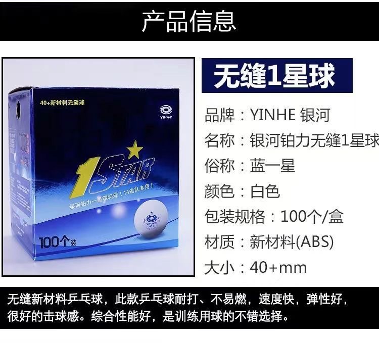 银河乒乓球 铂力1星40+无缝新材料球(100只装) 产品信息: