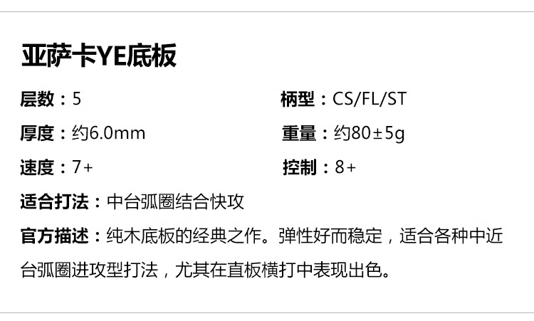 也许偏软的手感使得ye的推挡是一个软肋,但ye横打时发力的感觉会让你爱不释手!