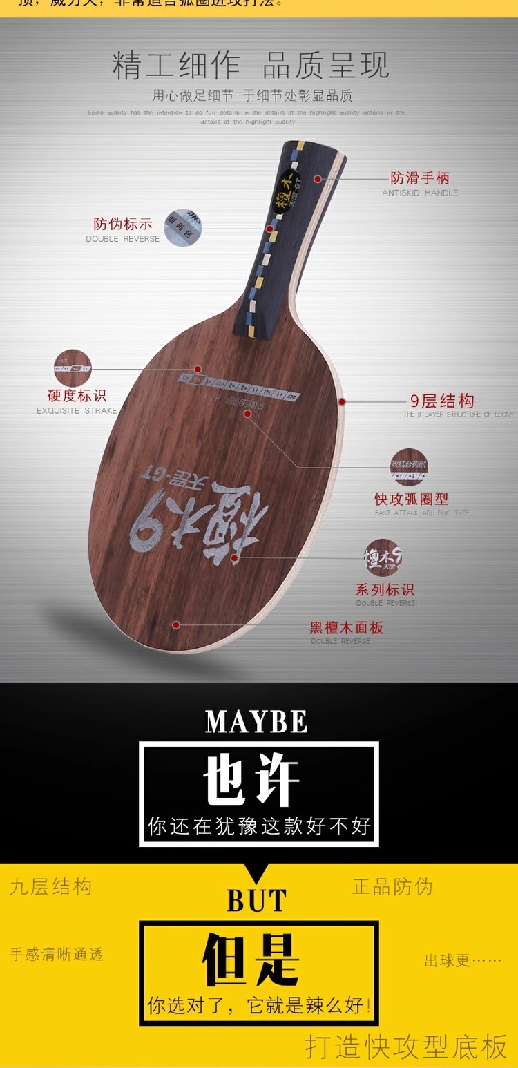 特点:弧圈威力巨大的9层纯木黑檀底板