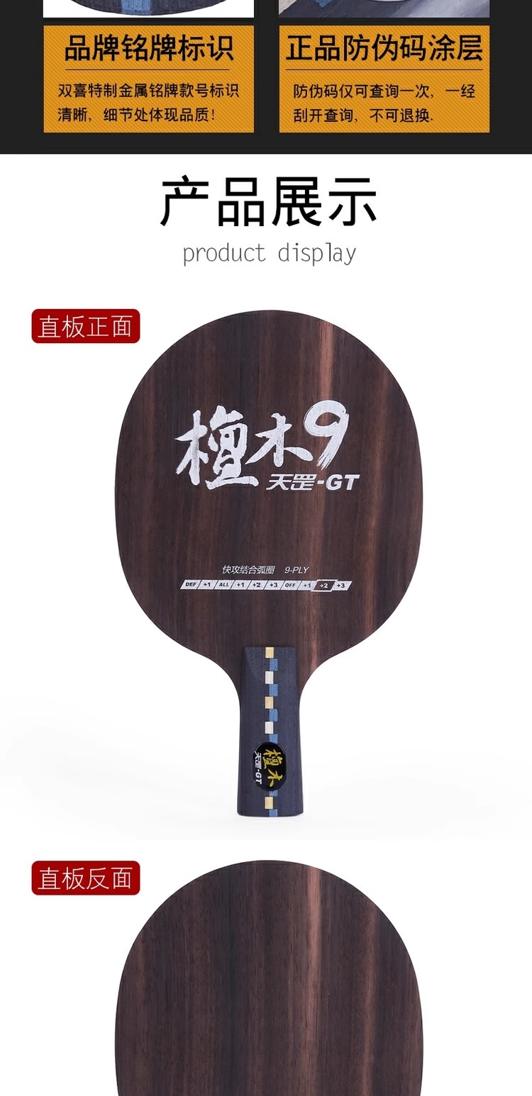 产品名称:红双喜天罡Di-GT檀木9乒乓底板底板