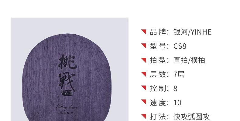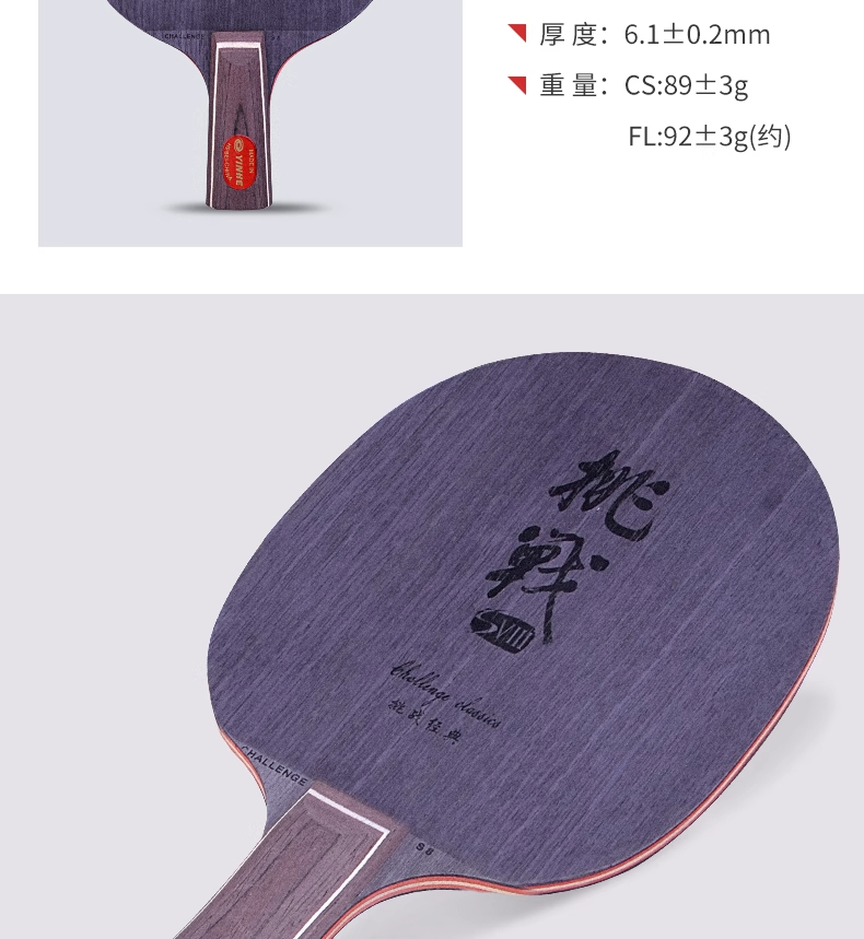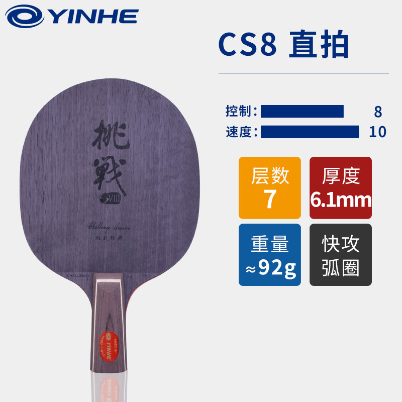 型号:挑战CS 8 速度:10 ?刂疲? ?闶???木 厚度:6.1+0.2 类型:快攻弧圈