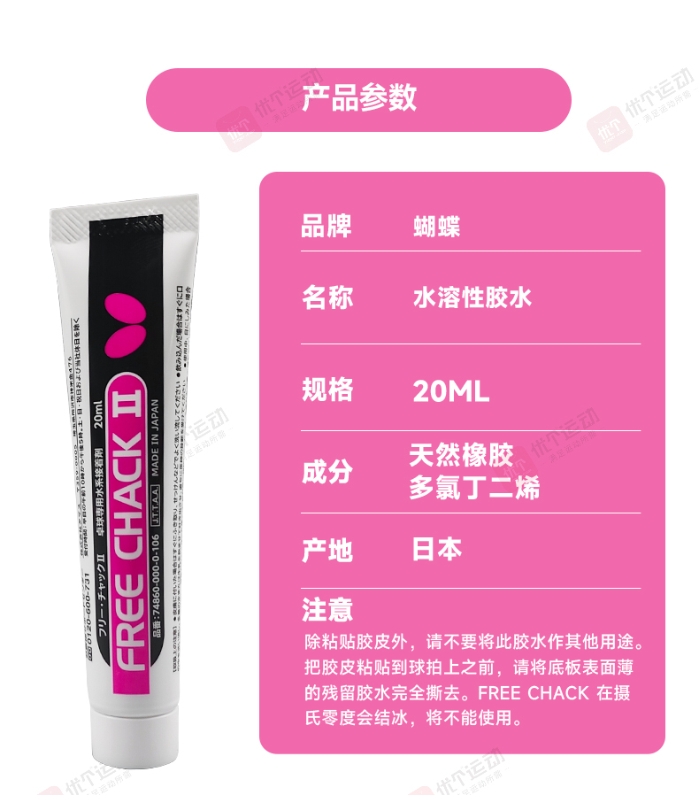 使用DIGNICCS、TENERGY、GLAYZER系列以及ROZENA胶皮时请配合此胶水使用