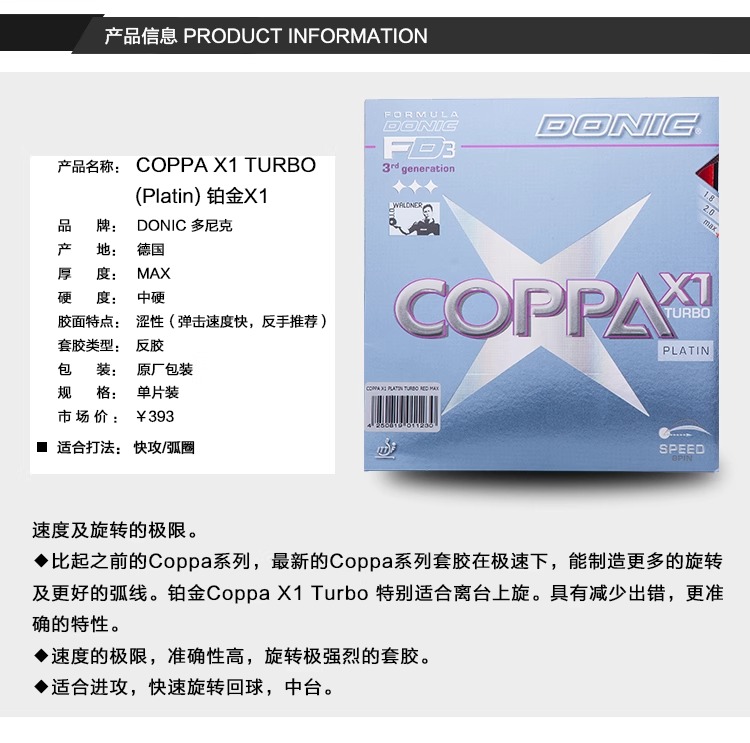 DONIC多尼克COPPA X1 TURBO(PLATIN) 铂金(新JO)