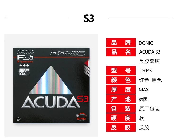 多尼克Donic Acuda S3 反胶套胶FD3(方程式第三代)