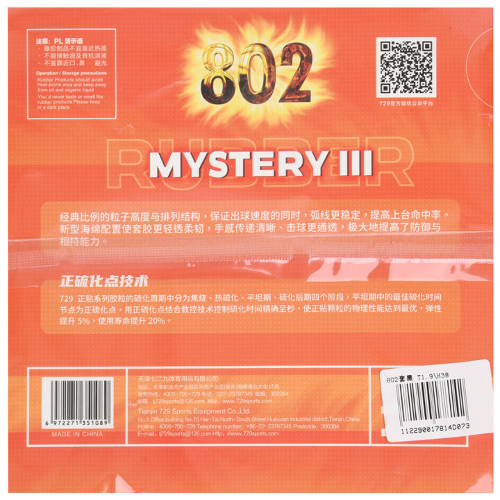 友谊729 鬼斧3 mystery3乒乓套胶 802正胶套胶 (通透稳定 进攻犀利)