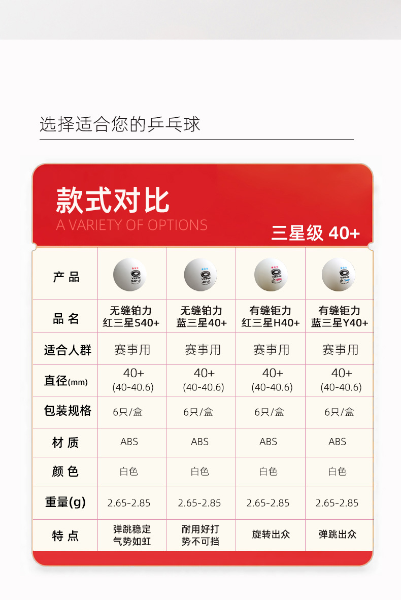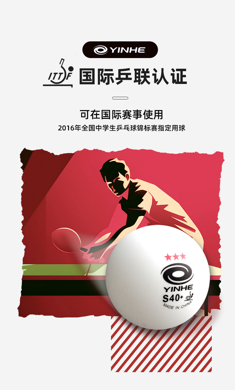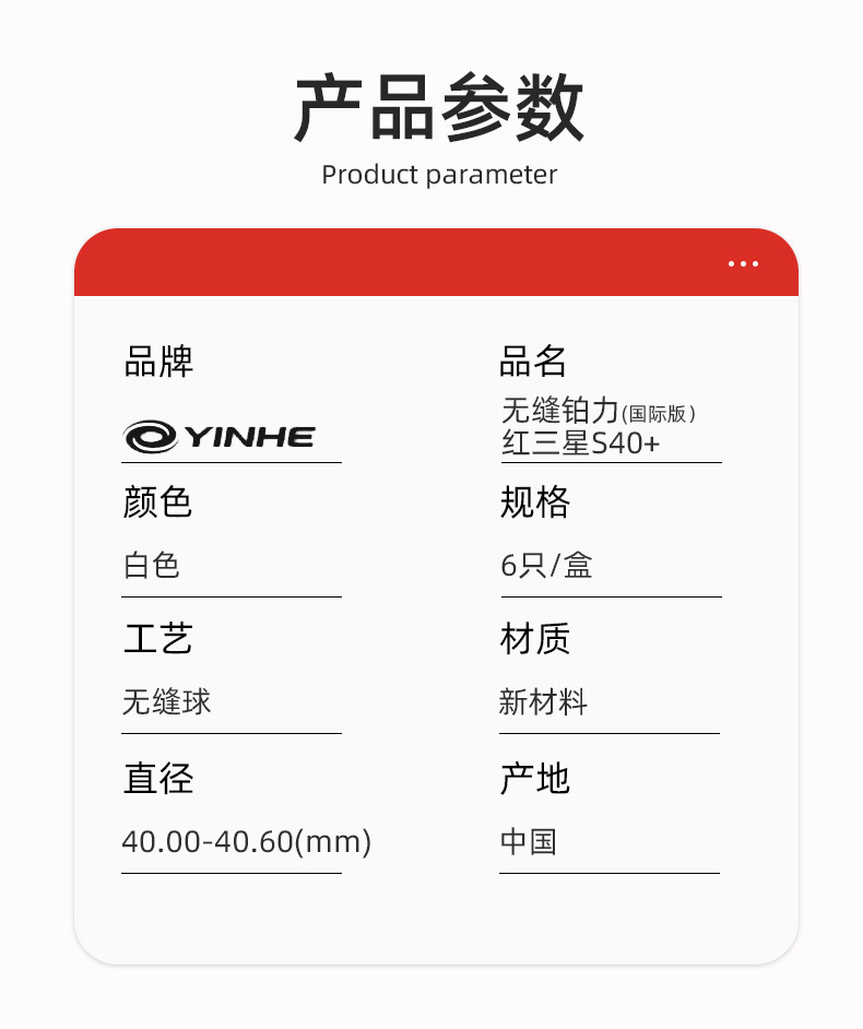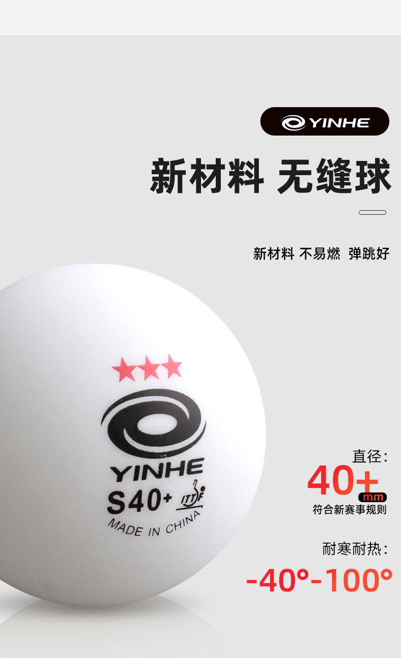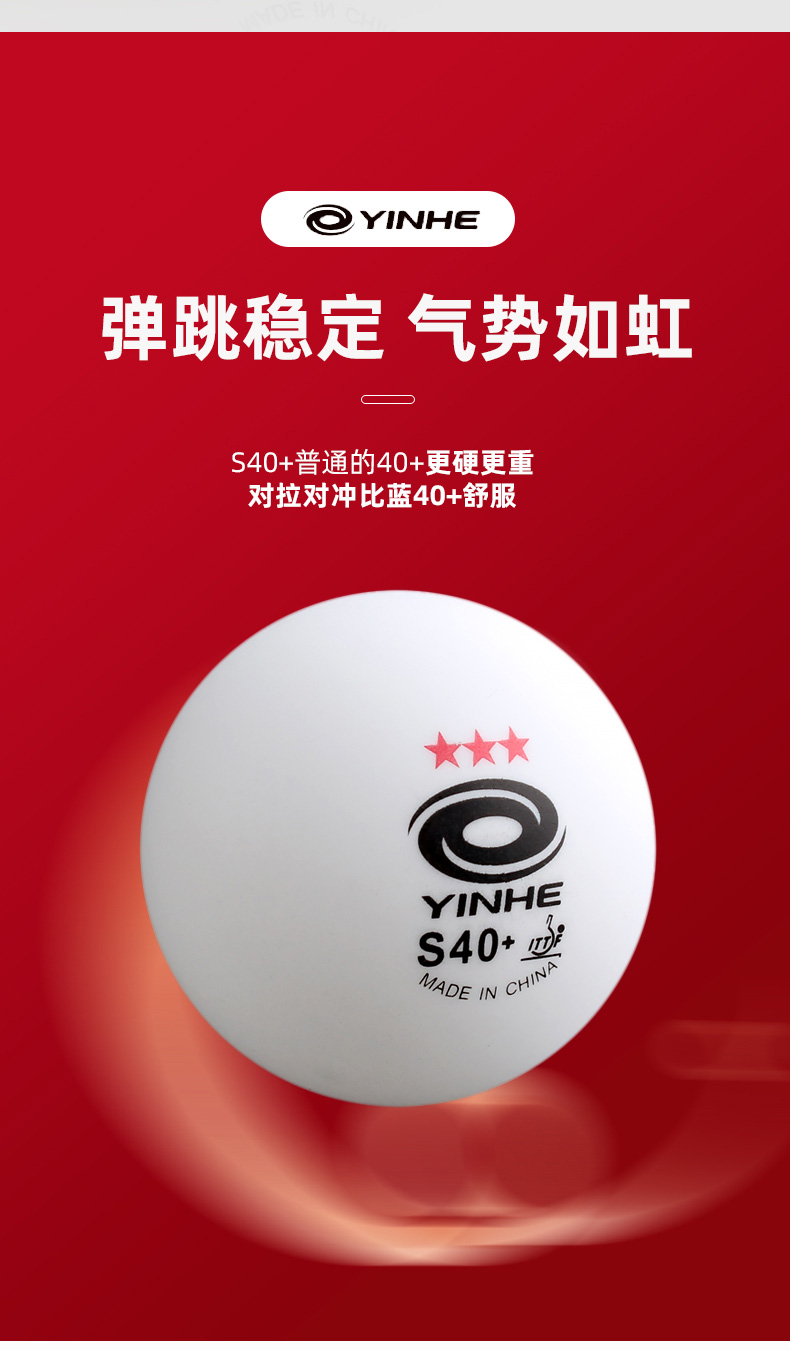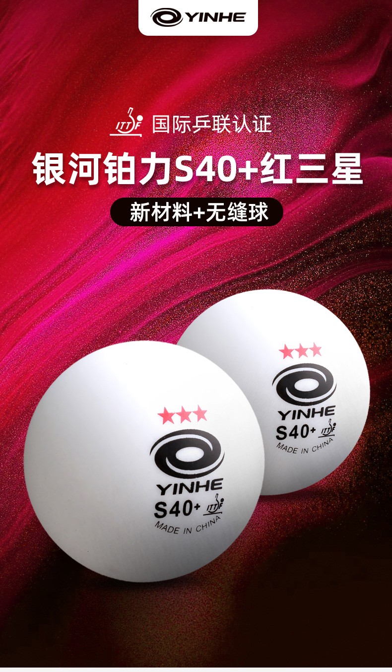 银河YINHE 铂力红三星 S40+ 新材料 无缝乒乓球 10盒装 圆度佳 弹跳稳 更耐打 产品信息: