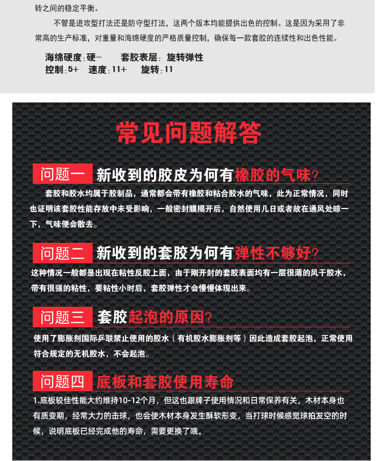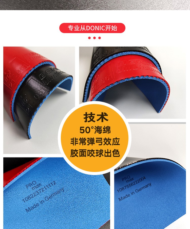 技术采用50°海绵,极具弹弓效应,胶面咬球出色