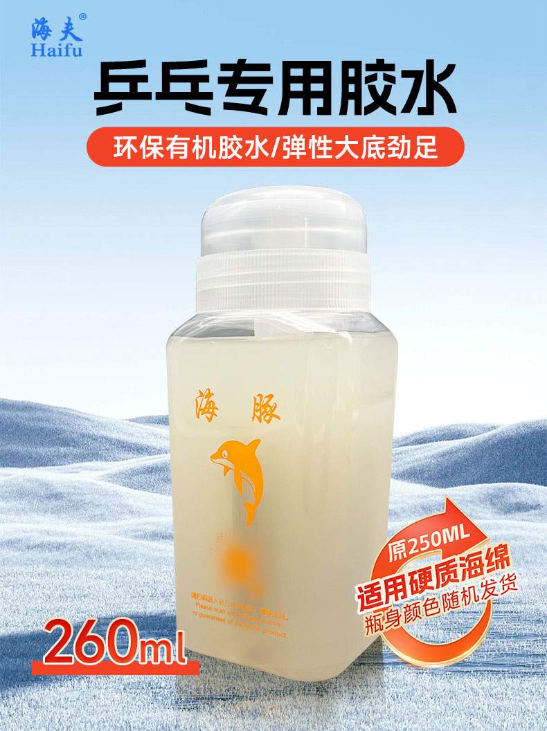 海夫海豚高弹持久胶水-乒乓专用胶水 全新升级为260ML/瓶装 加量不加价!