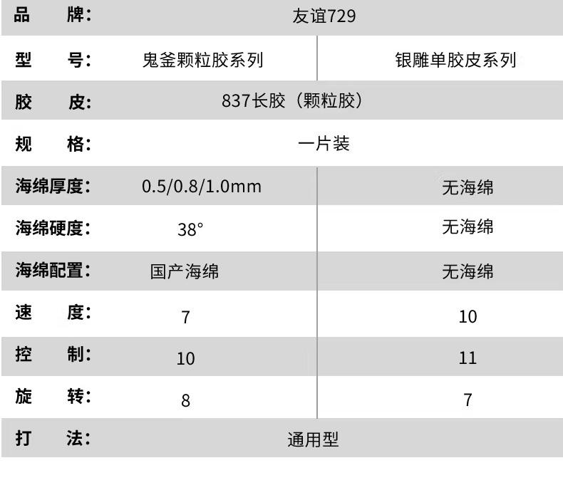 友谊729 银雕755 长胶单胶皮 乒乓胶皮