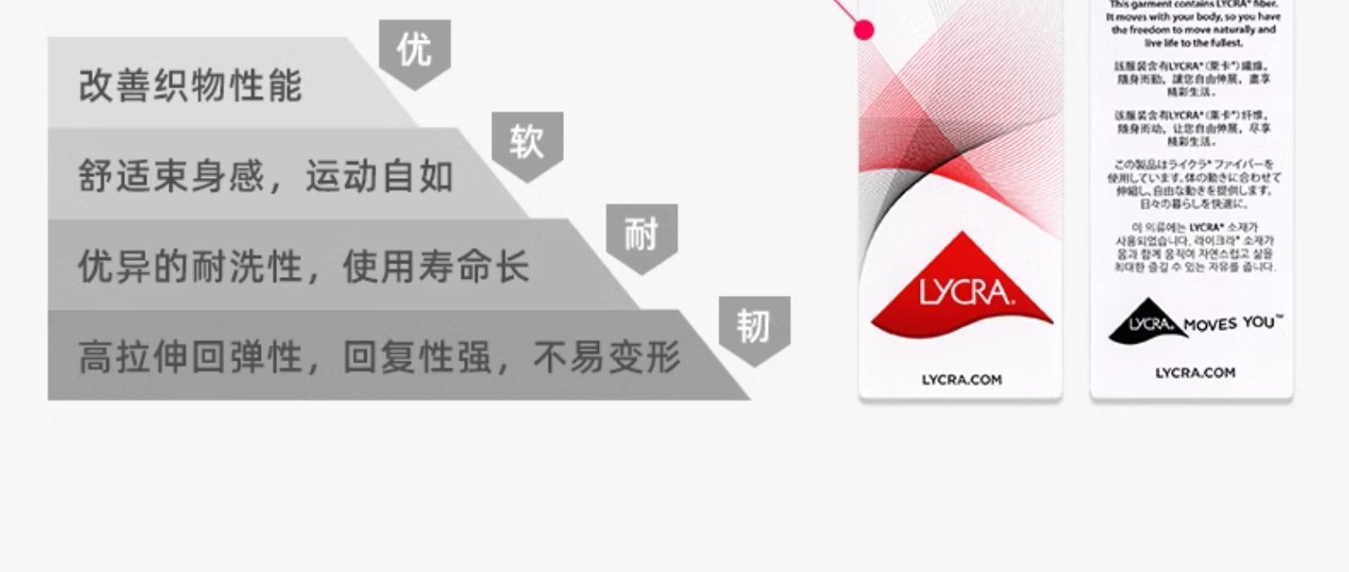选用莱卡高弹面料,回弹性强,细腻舒适,