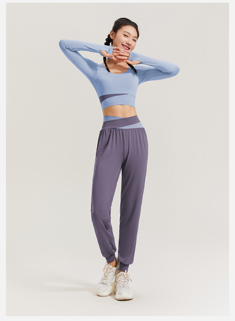 才爵长袖瑜伽套装【长袖】灰蓝+灰紫色两件套