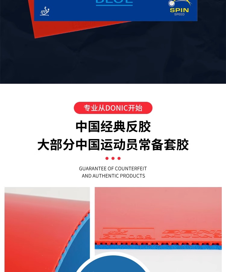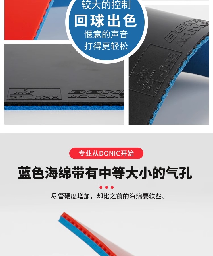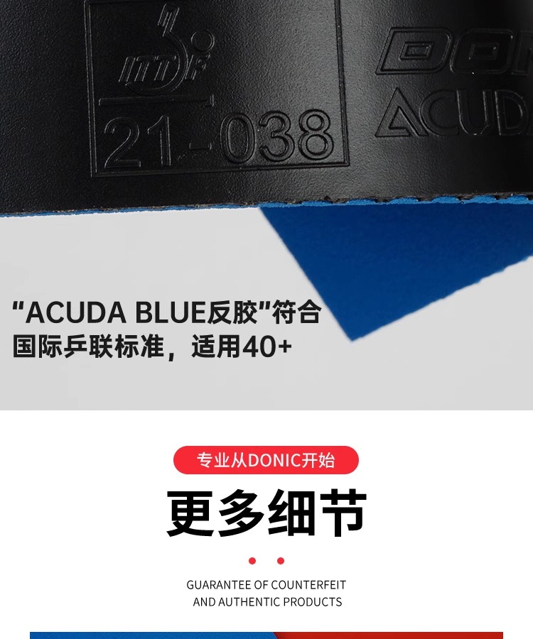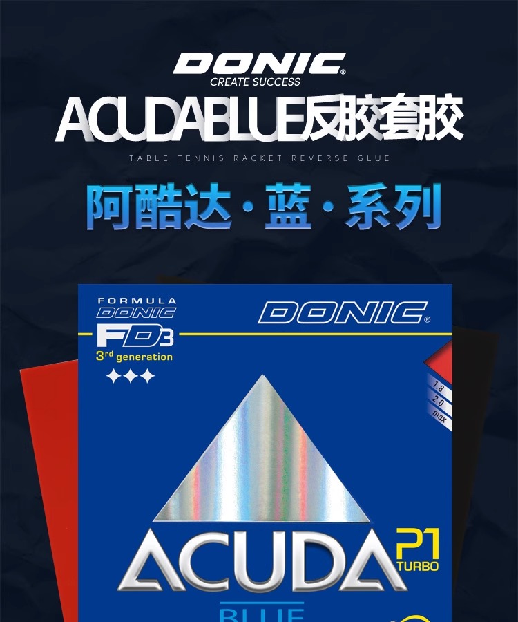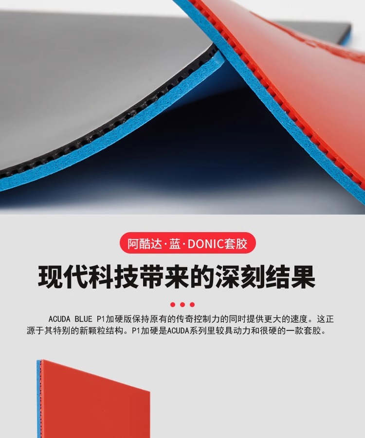 DONIC多尼克 乒乓球胶皮 Acuda Blue P1 阿酷达·蓝 P1 涩性乒乓反胶套胶 13021