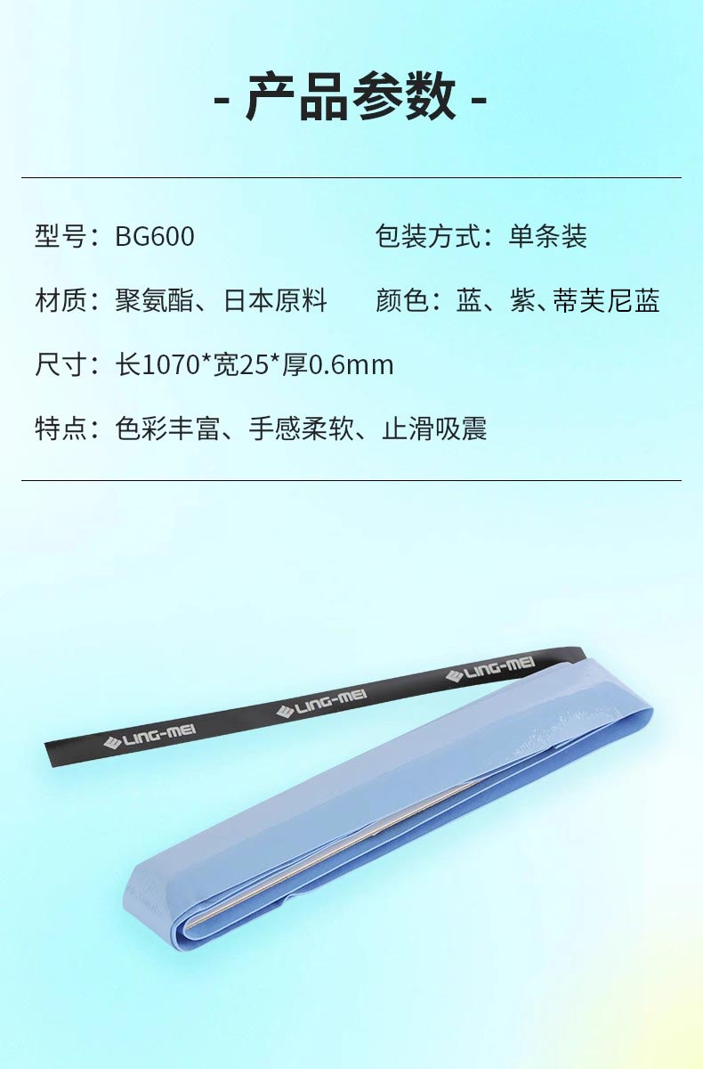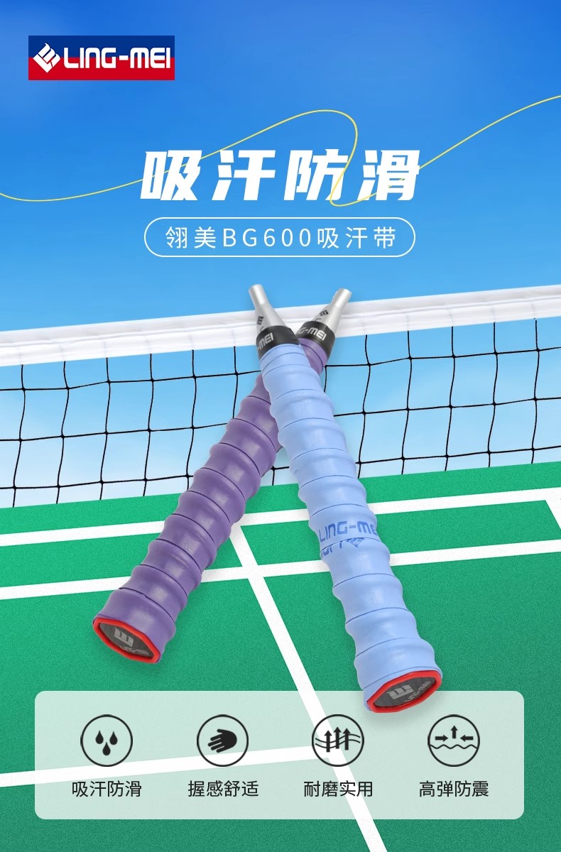 LING-MEI 翎美 羽毛球手胶 BG600 龙骨材质 球拍手柄吸汗带 单条装 防滑吸汗 减震耐磨
