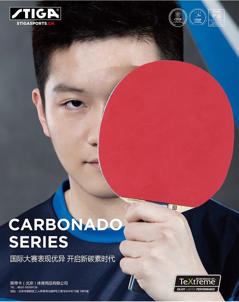 两面的碳层由45度或者90度的碳纤维嵌角构成,Carbonado 底板因此实现了个性化的甜区,从而带给您专属的击球体验。Carbonado生产工艺中碳纤维的结构方式决定了当在击球过程中发生弯曲或扭转时,板面都只会在该形变方向产生作用力,而TeXtreme拉伸型碳纤维的延展特质显著提升出球轨迹的质量,并提高出球速度,使其适用于不同打法的球员。经斯帝卡工程师无数次严格测试,将145、190?科椒矫?00g降至每平方米64g时,底板的对球的控制力以及硬度等综合性能可以达到最为平衡的状态,从而在保?痔妓氐装甯叩缘那疤嵯拢蛟苯咏磕镜氖指刑逖椤E浜闲驴钐妓氐装宓奶匦裕こ淌玊eXtreme碳层进行淡化处理使得Carbonado 90、45拥有完美持球感,击球时的旋转变化更多变。特殊的粘合效果让球板在远台也具备强大的杀伤力,将当代乒乓球所需的凶狠元素诠释的淋漓尽致。
