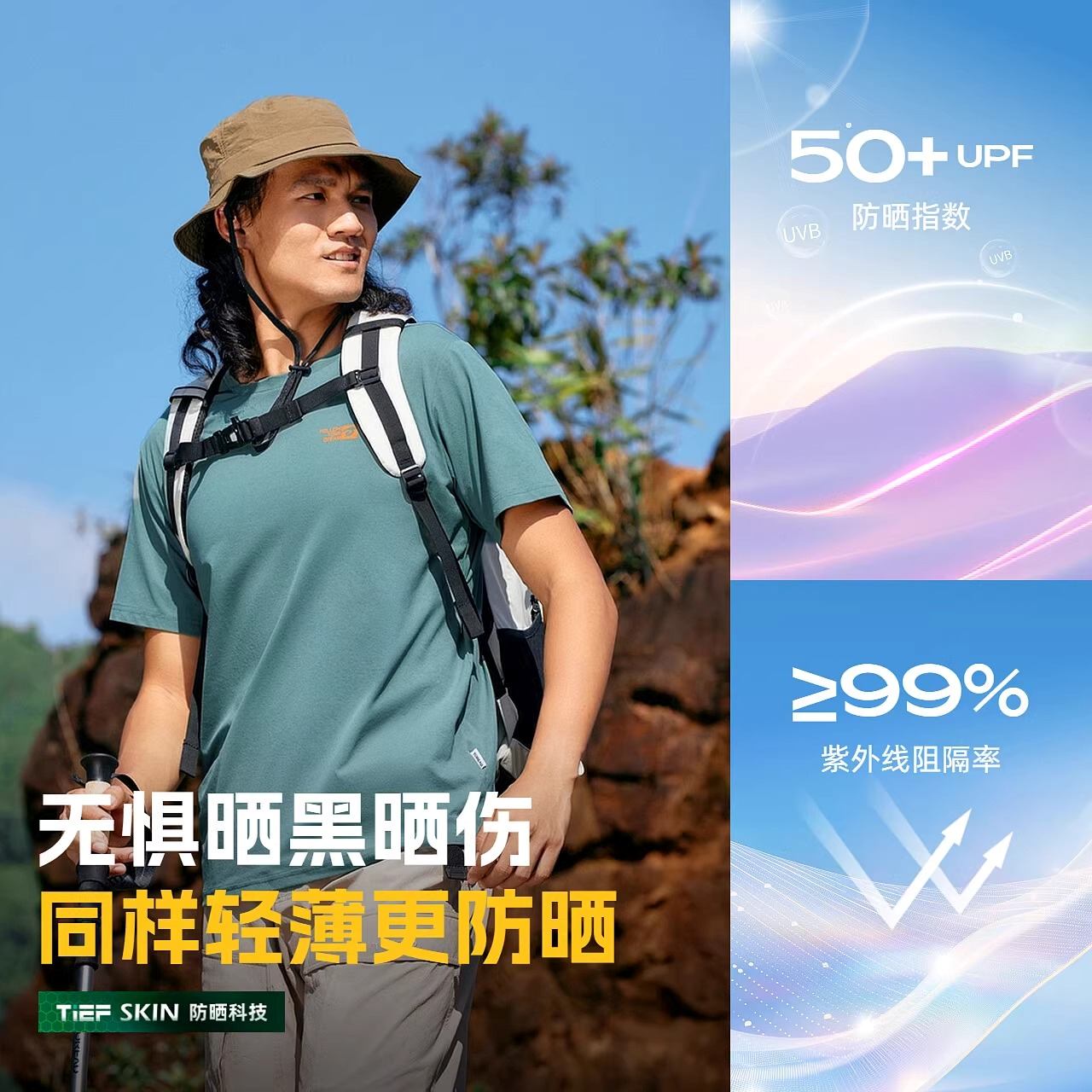 TOREAD探路者 新款短袖 男女同款25年户外徒步吸汗速干高弹面料印花T恤 浅卡其 TAJJBN80807