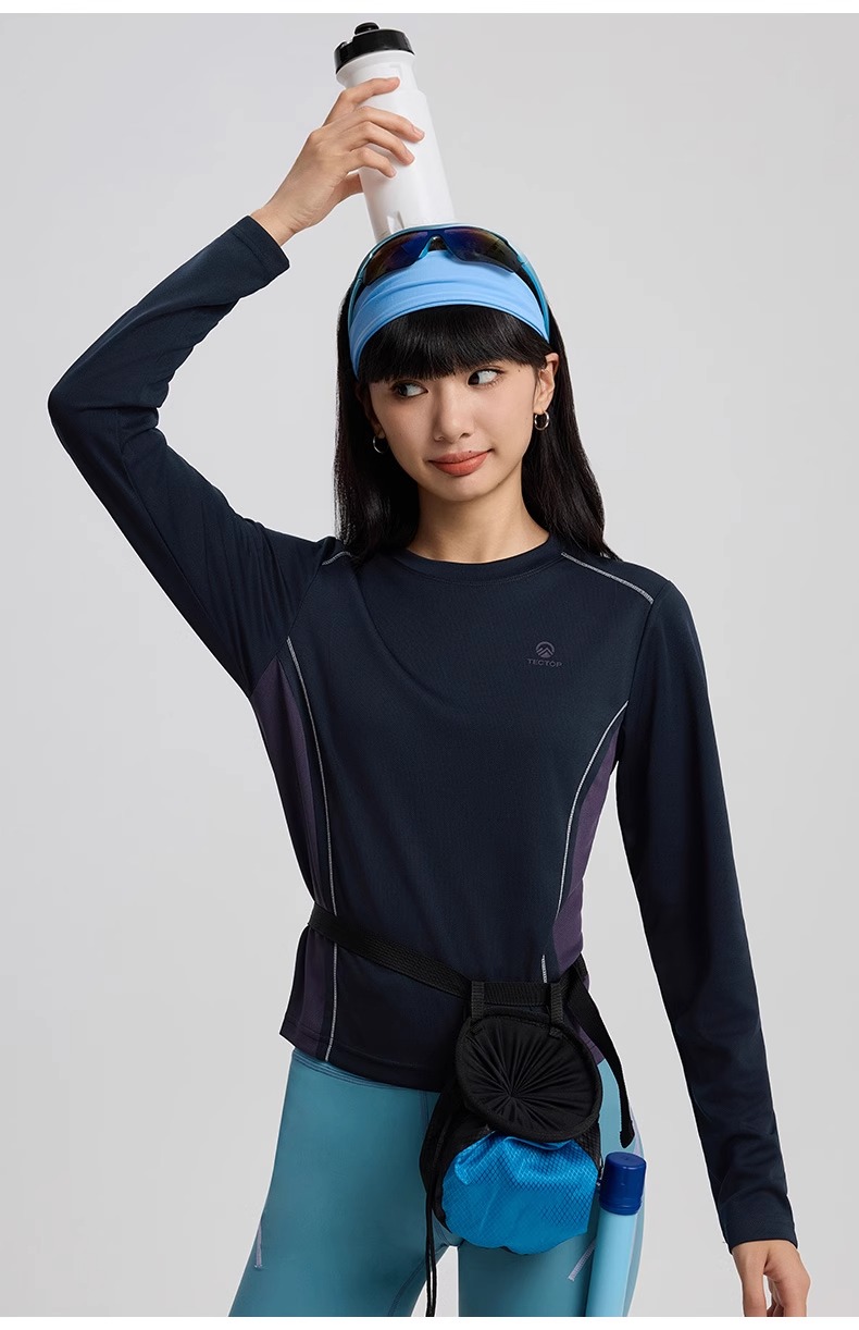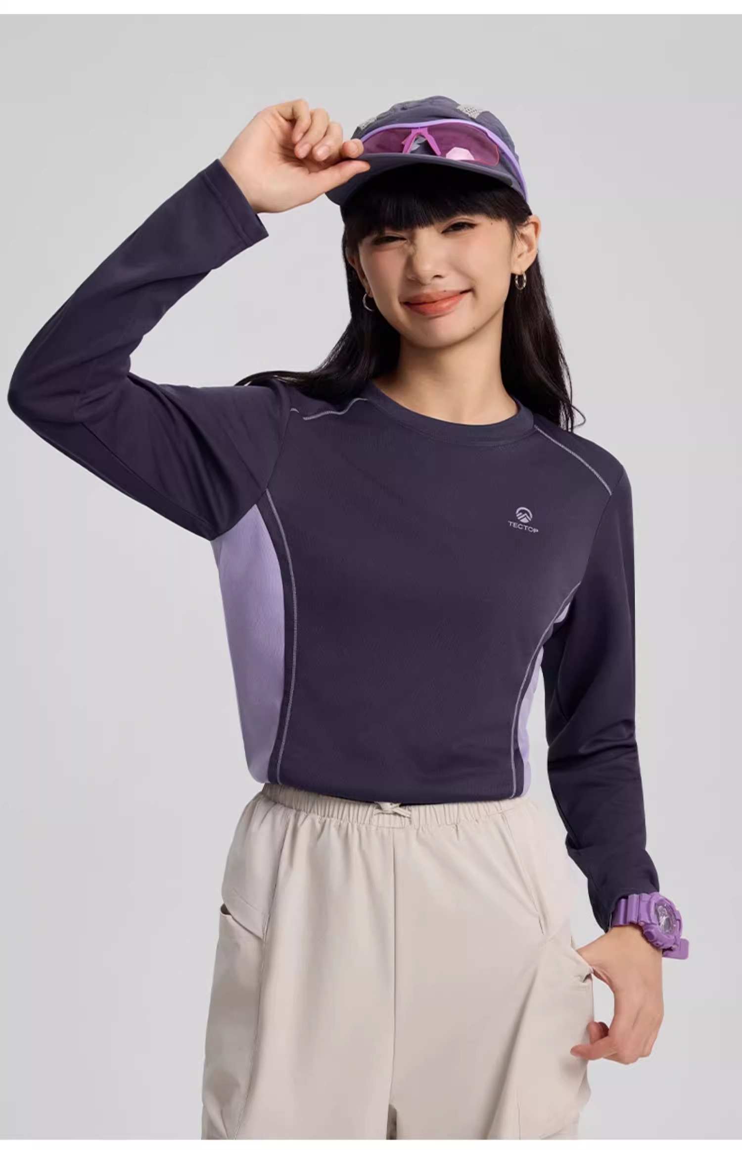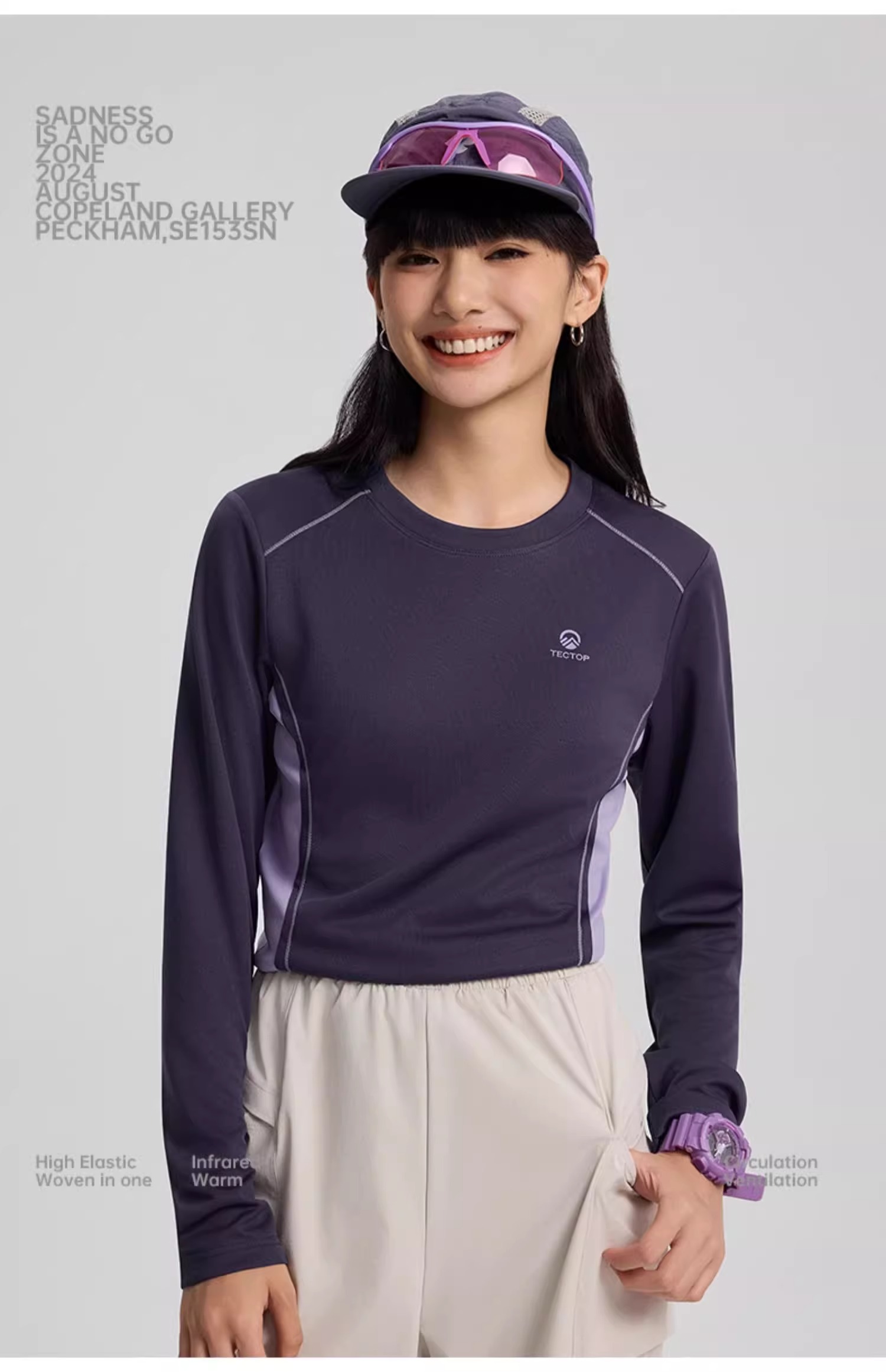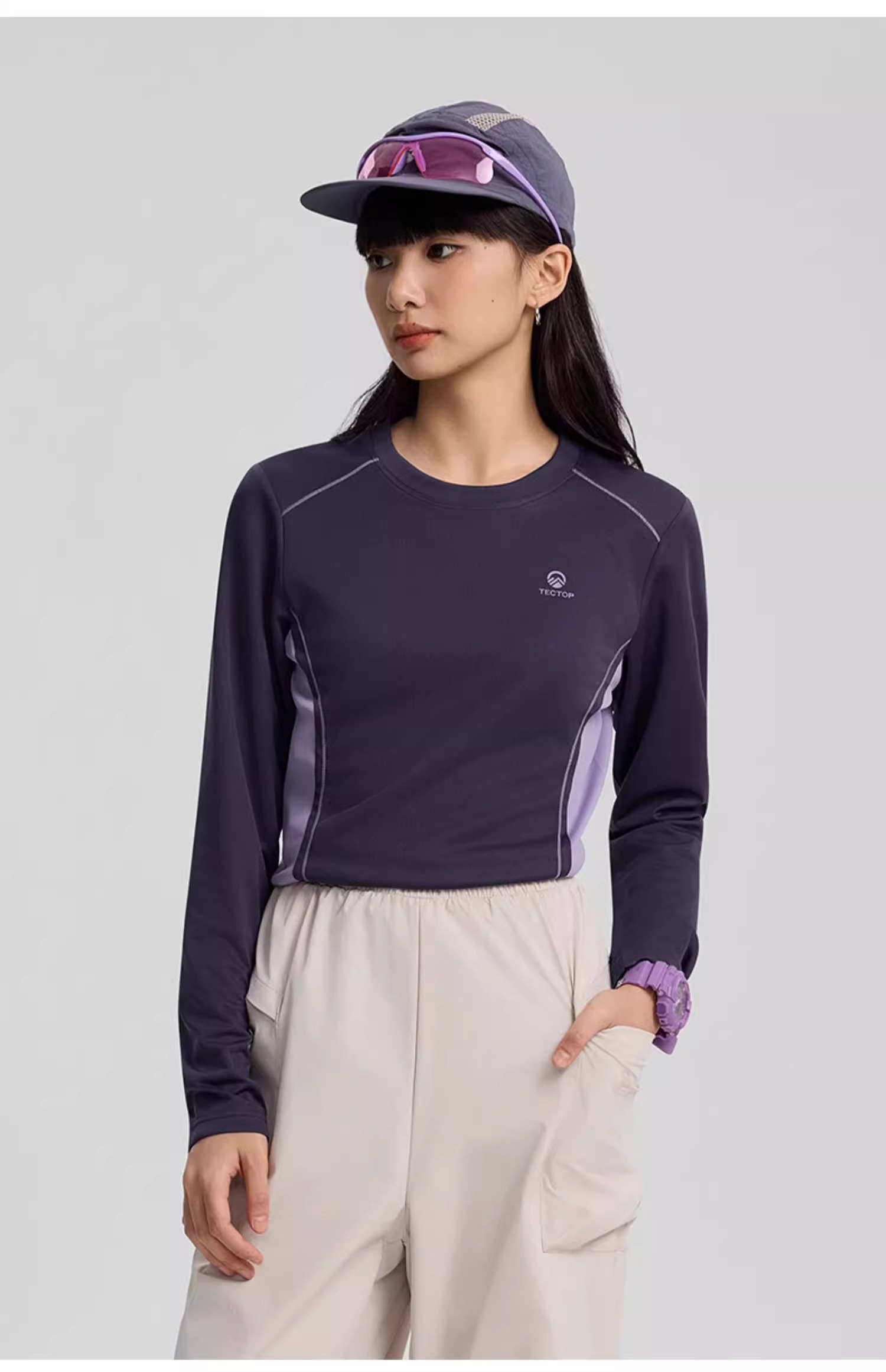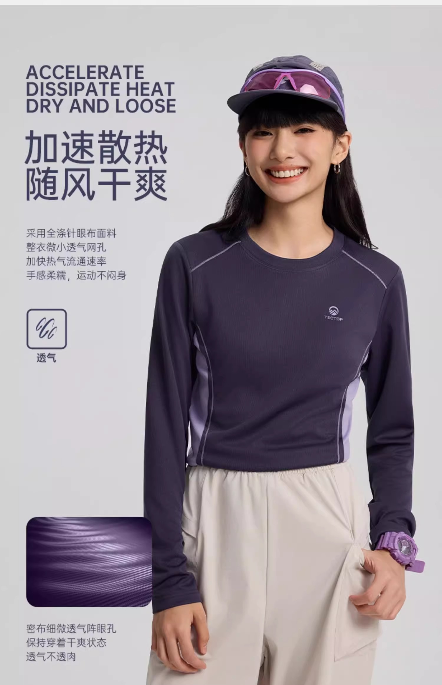 TECTOP探拓 户外速干长袖 女款春夏运动跑步健身训练打底衫 山梗紫/齐紫 2512262TX