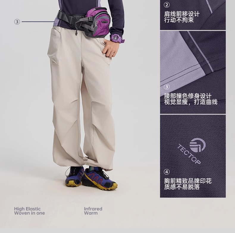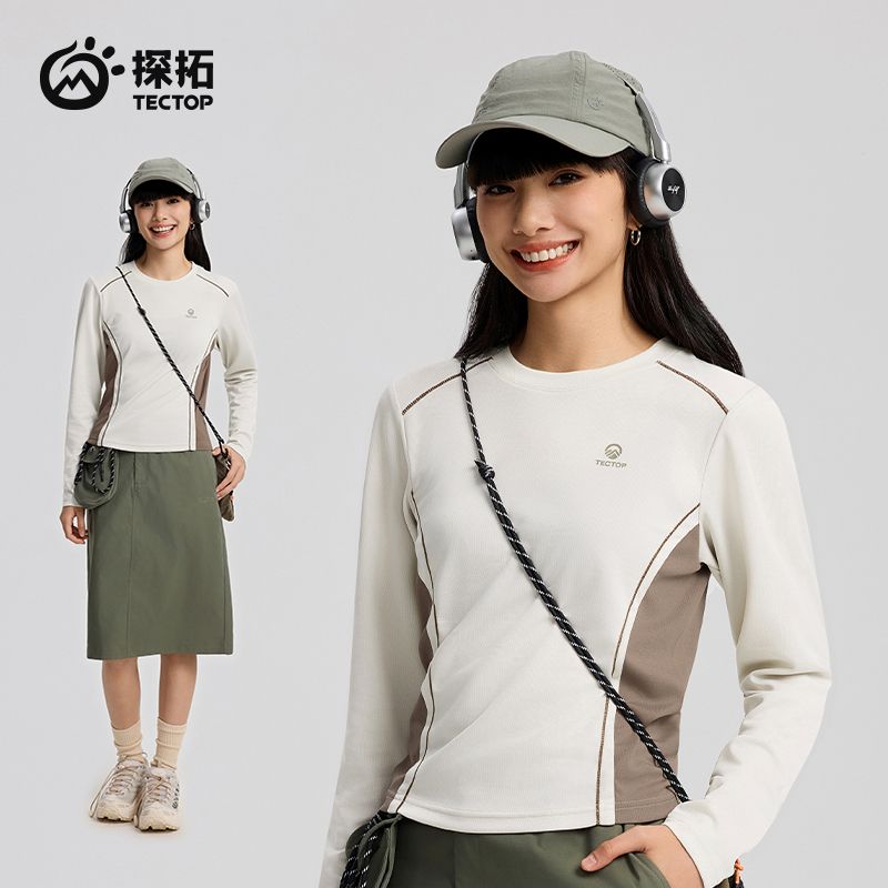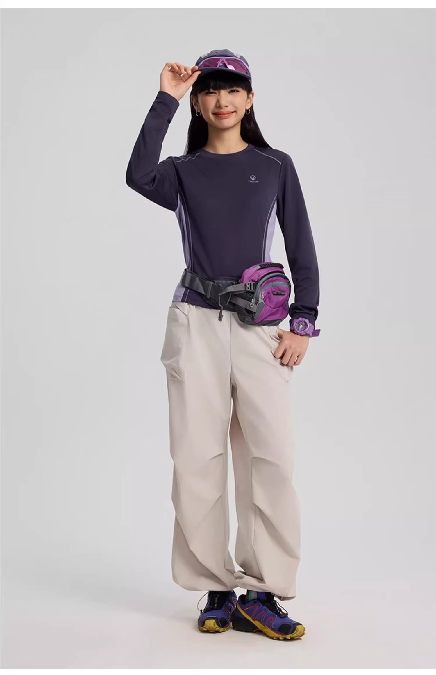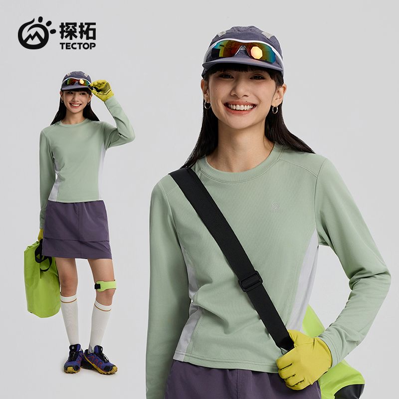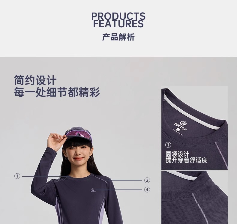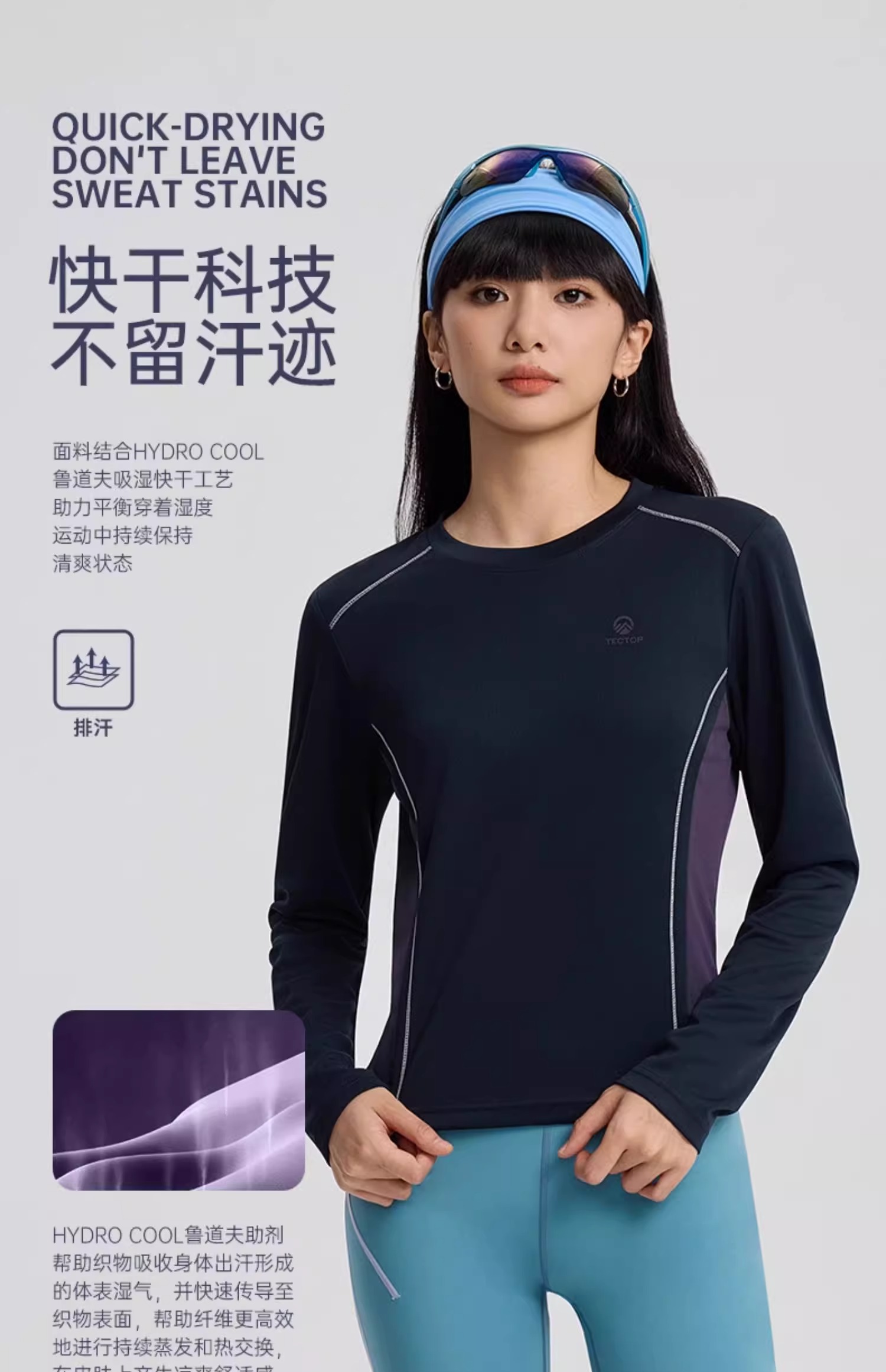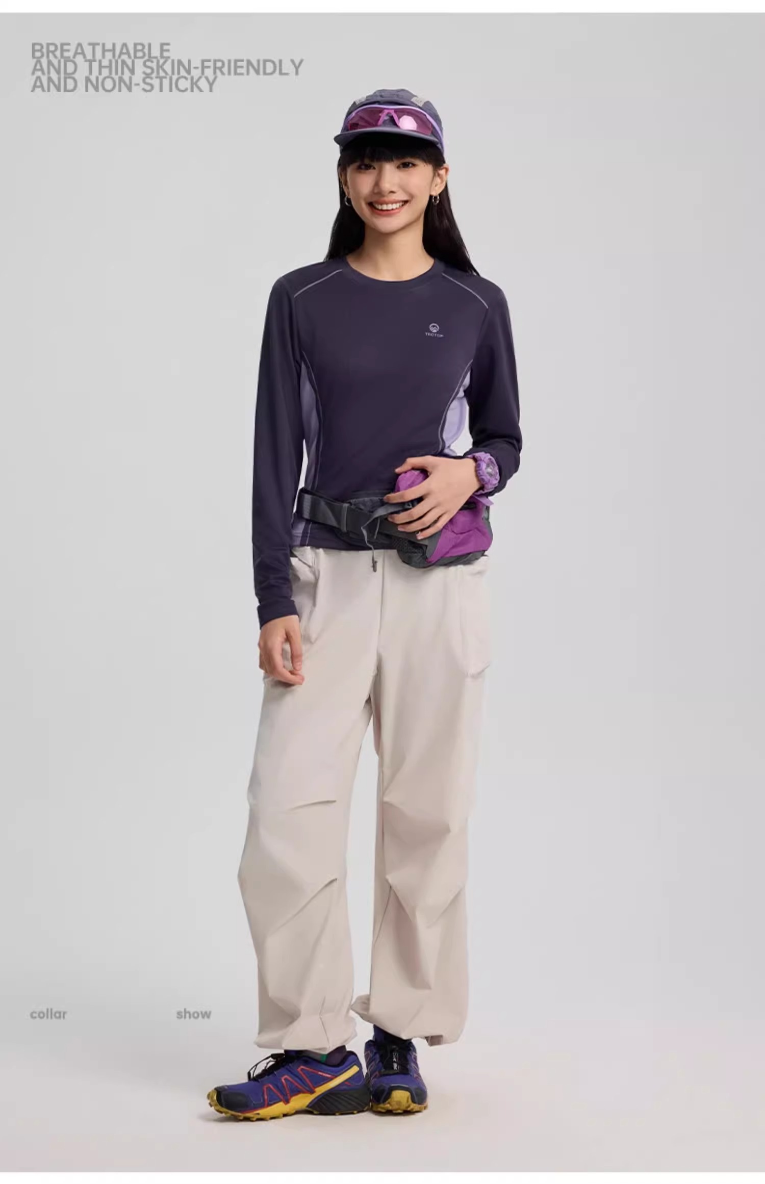 TECTOP探拓 户外速干长袖 女款春夏运动跑步健身训练打底衫 山梗紫/齐紫 2512262TX