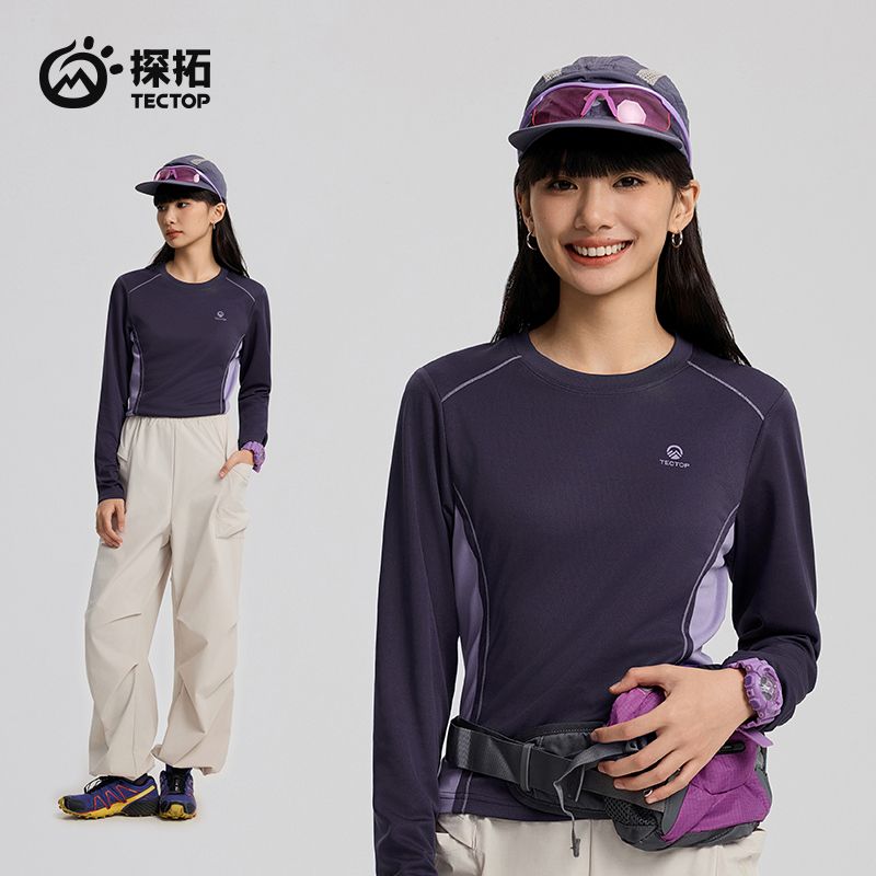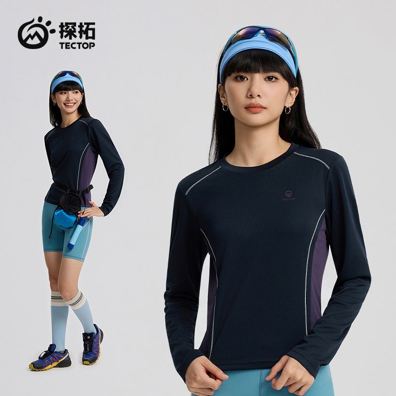 TECTOP探拓 户外速干长袖 女款春夏运动跑步健身训练打底衫 极夜蓝/山梗紫 2512262TX