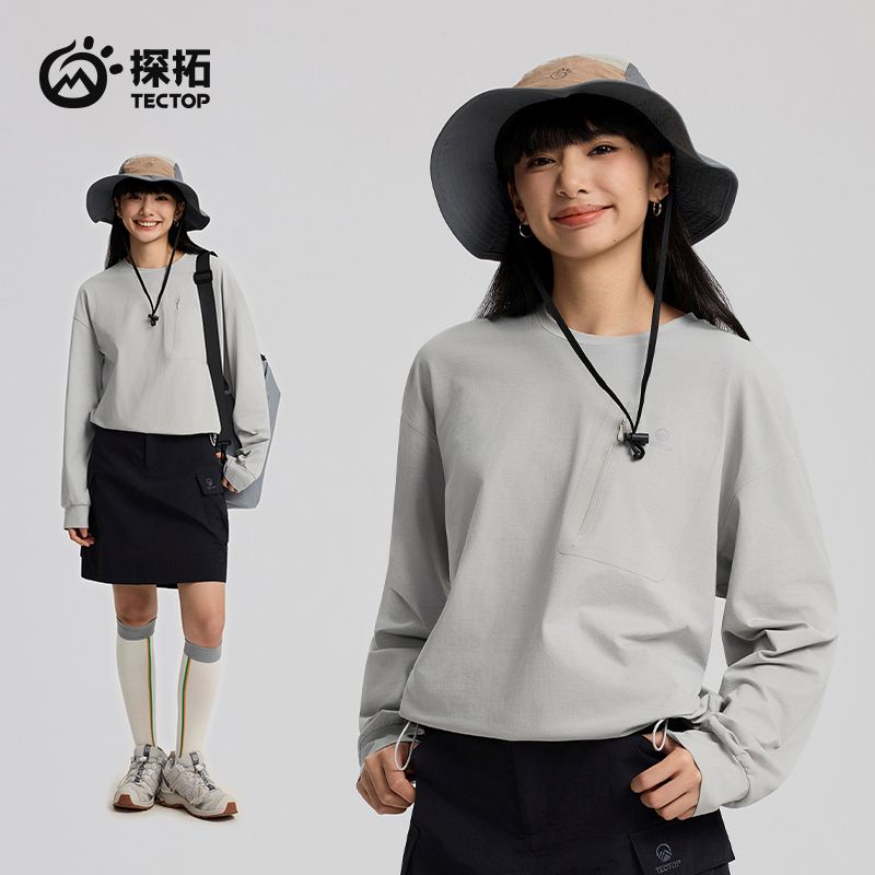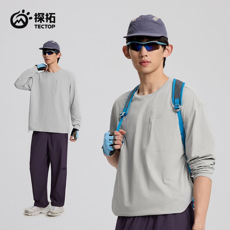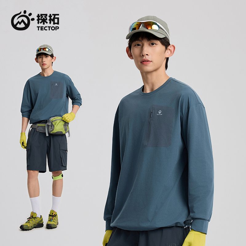 TECTOP探拓 户外速干长袖 男女款春夏防晒透气运动宽松训练服 梅子青-男款 2512410TX
