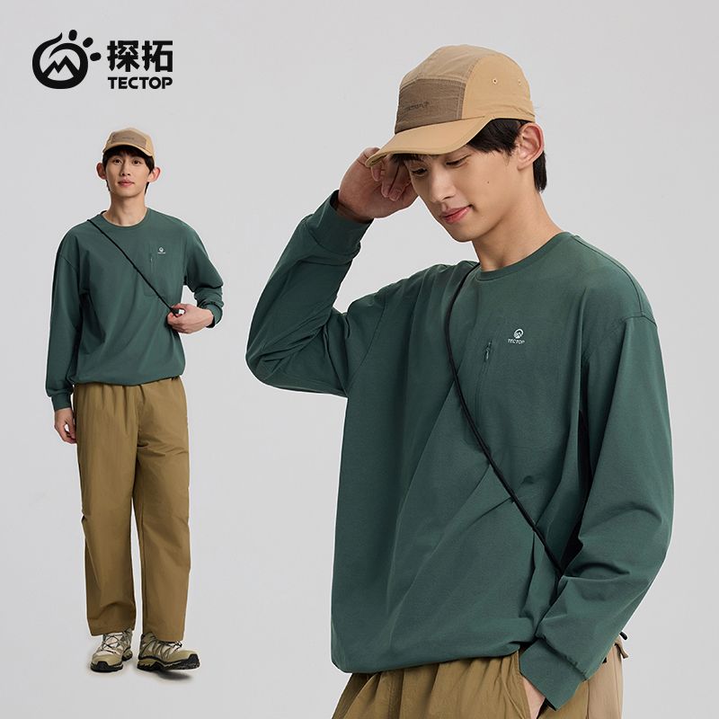 TECTOP探拓 户外速干长袖 男女款春夏防晒透气运动宽松训练服 仓石绿-男款 2512410TX