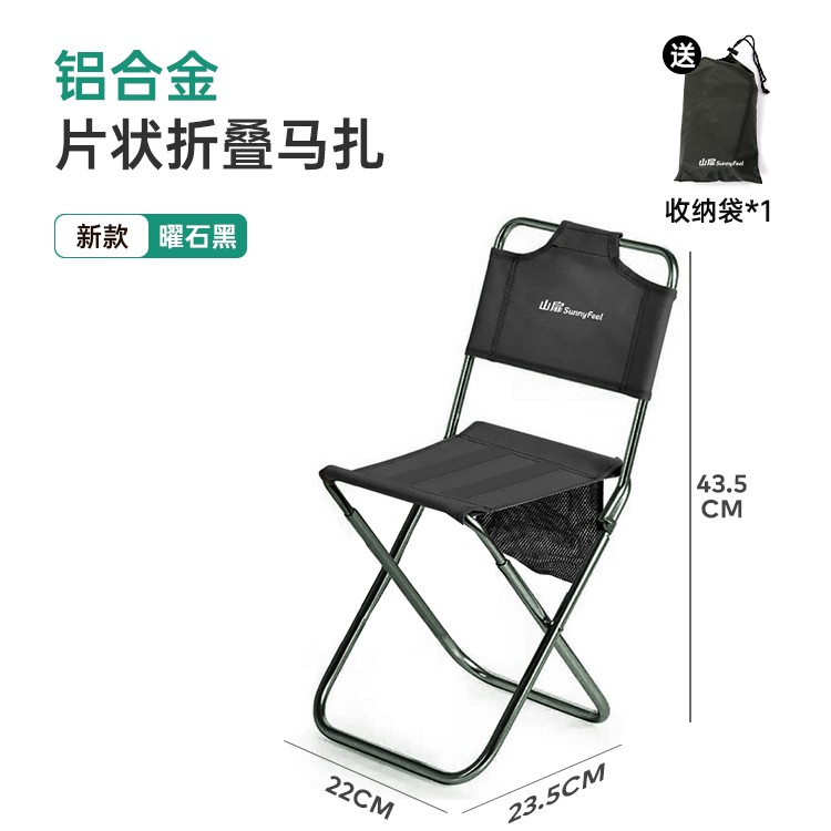 SunnyFeel山扉 户外小马扎 便携折叠露营板凳 户外超轻铝合金折叠椅 曜石黑 SF-040904003