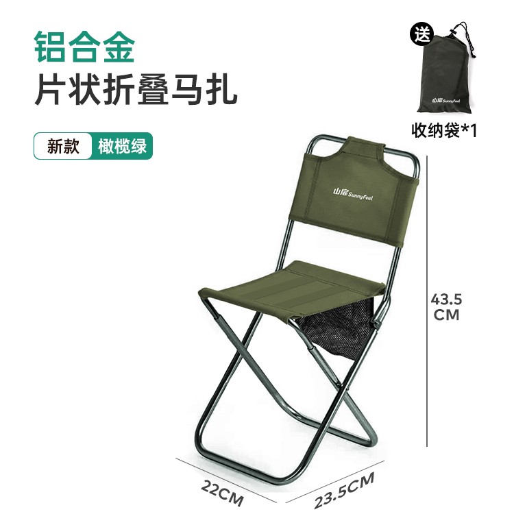 SunnyFeel山扉 户外小马扎 便携折叠露营板凳 户外超轻铝合金折叠椅 曜石黑靠背款 SF-040904003
