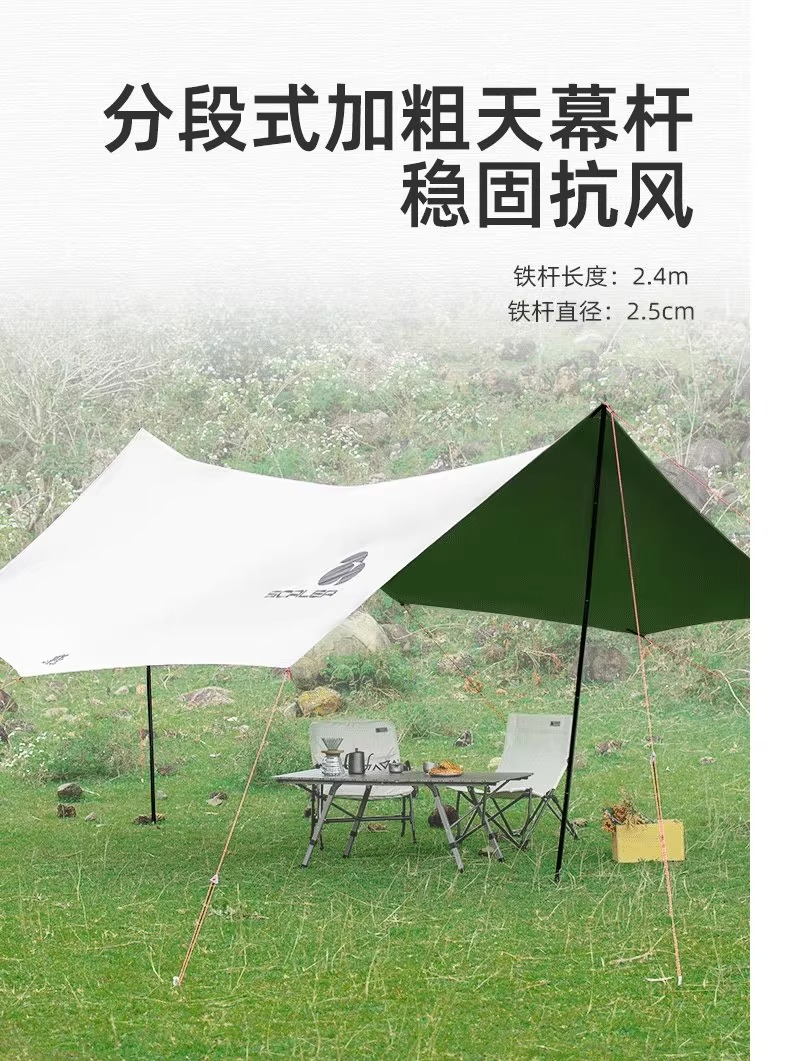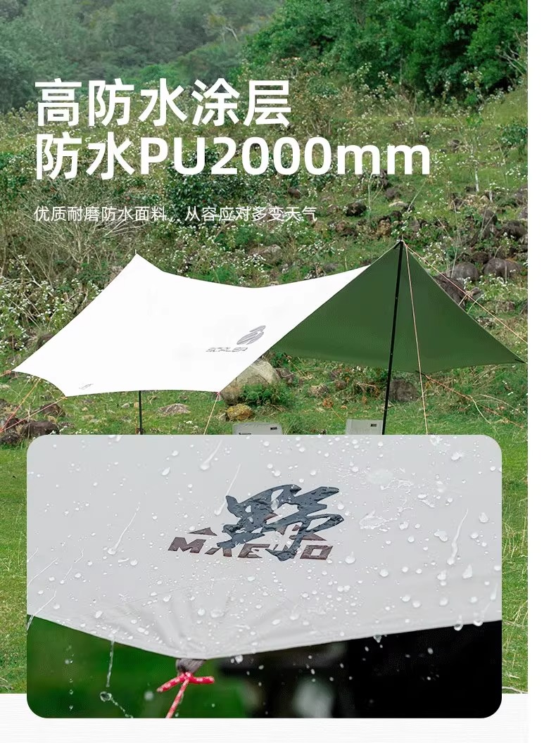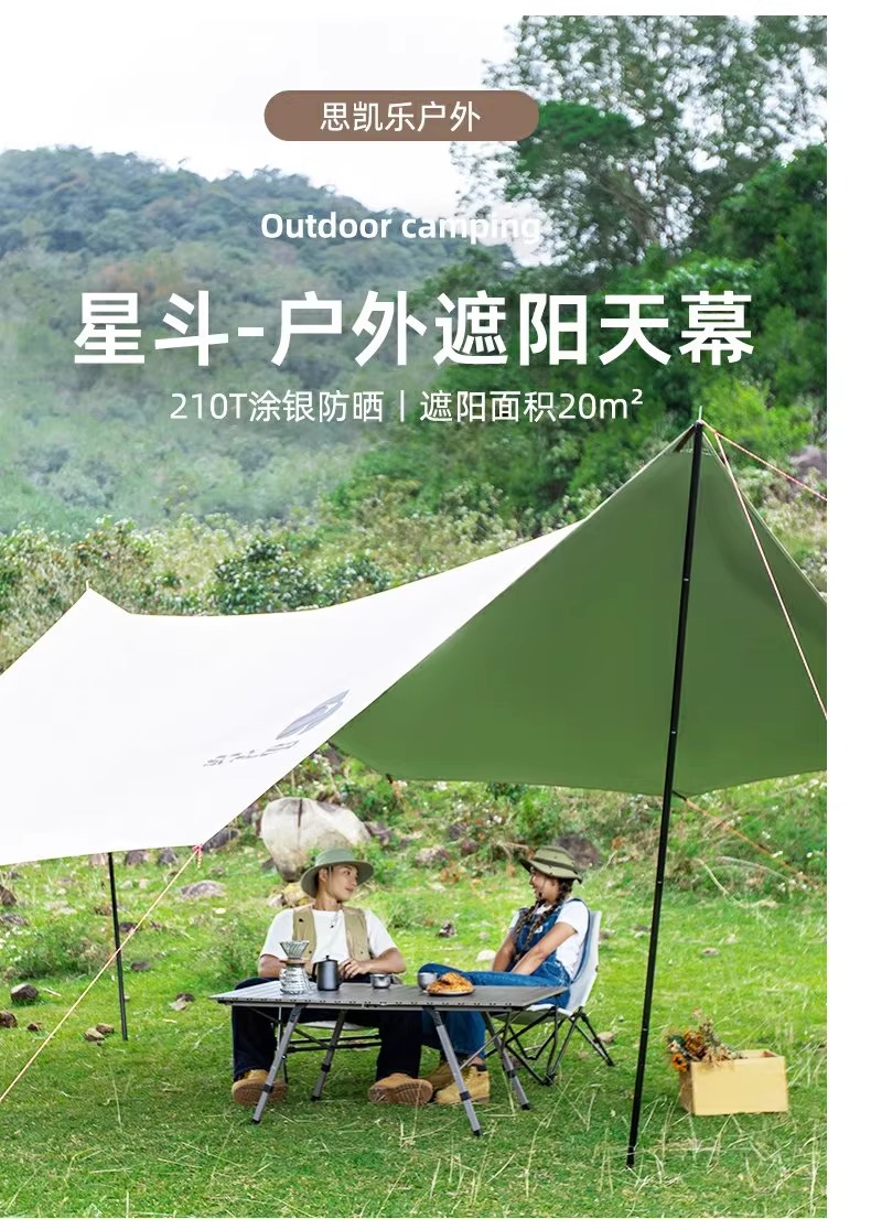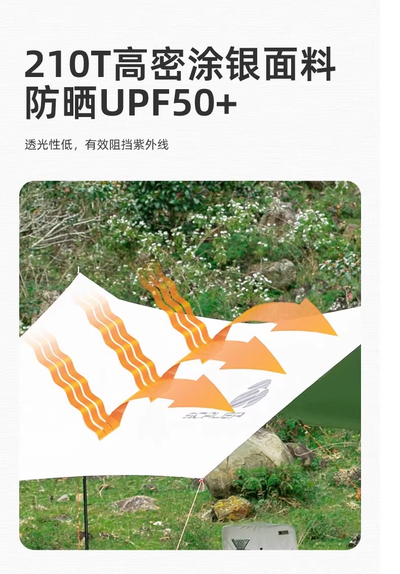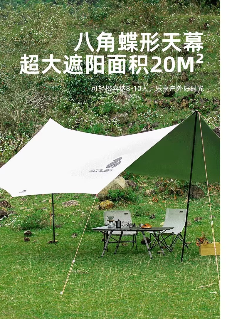 SCALER思凯乐 户外天幕 户外野餐露营防风雨防晒八角蝶形涂银折叠便携遮阳棚 卡其 ZAF073