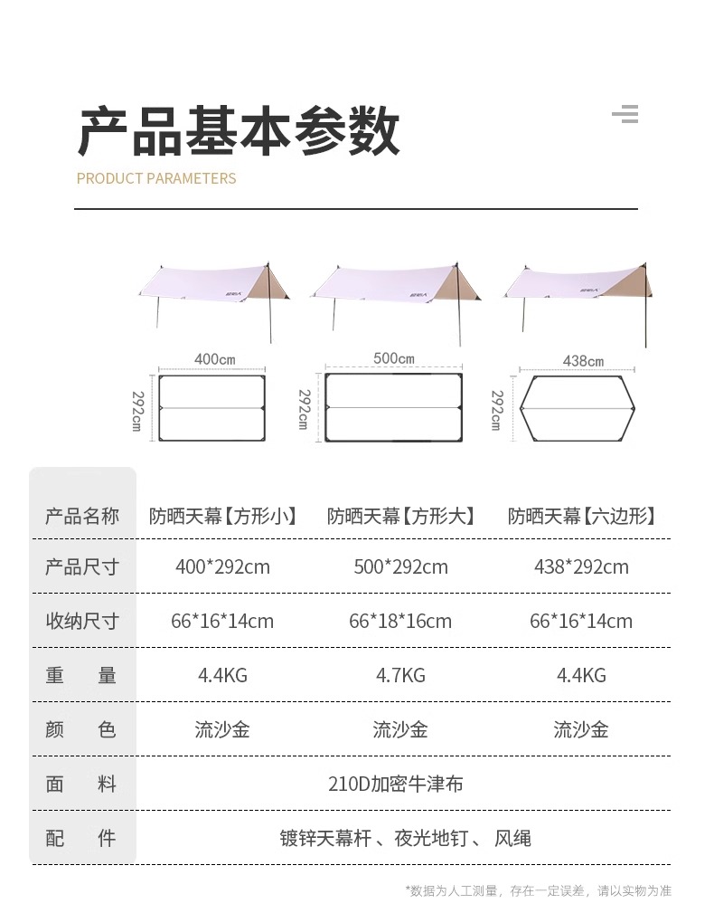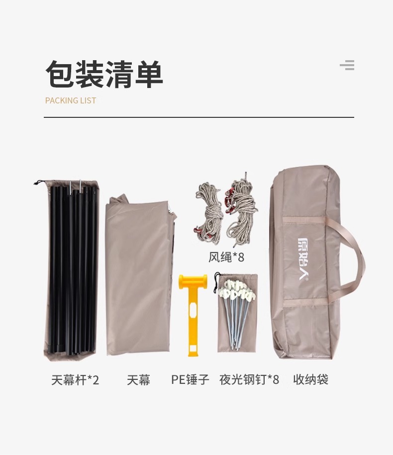 The Primitive原始人 户外天幕 GTM1天幕流沙金便携式野炊方形防晒野营方形天幕 3*4米流沙金 GTM1
