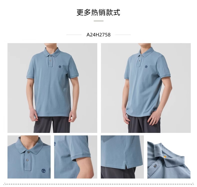 Timberland添柏岚 户外POLO衫 夏季新款男士宽松半袖翻领短袖T恤 深蓝色 A24H2Z02