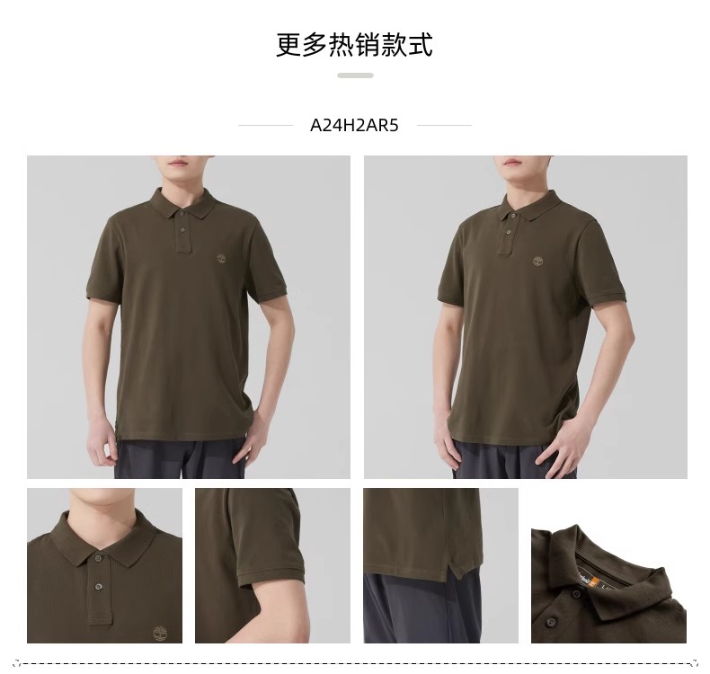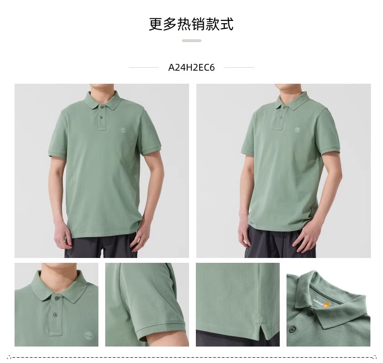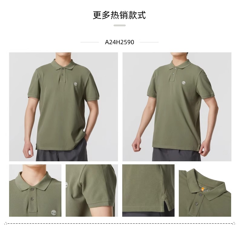 Timberland添柏岚 户外POLO衫 夏季新款男士宽松半袖翻领短袖T恤 军绿色 A24H2AR5