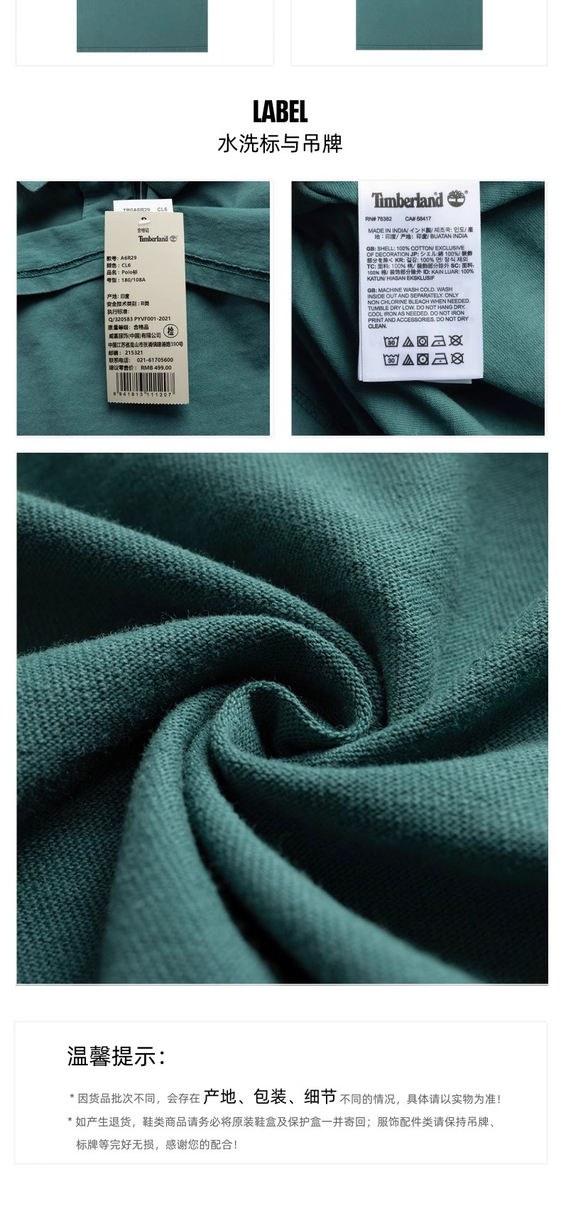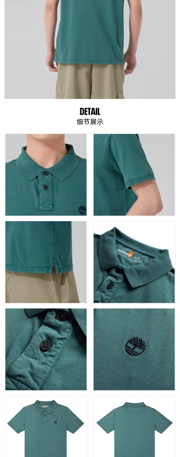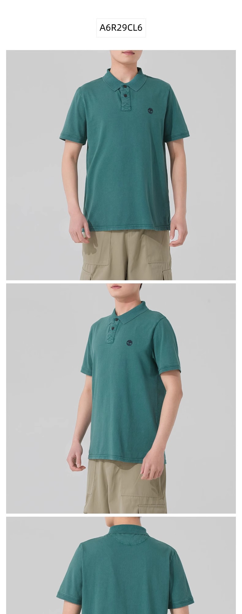 Timberland添柏岚 户外POLO衫 夏季新款男士宽松半袖翻领短袖T恤 蓝绿色 A6R29CL6