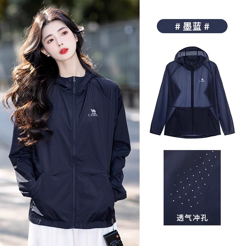 CAMEL骆驼 户外防晒衣 男女同款夏季新款遮阳透气轻薄凉感冰丝防晒服 墨蓝 A012251005A