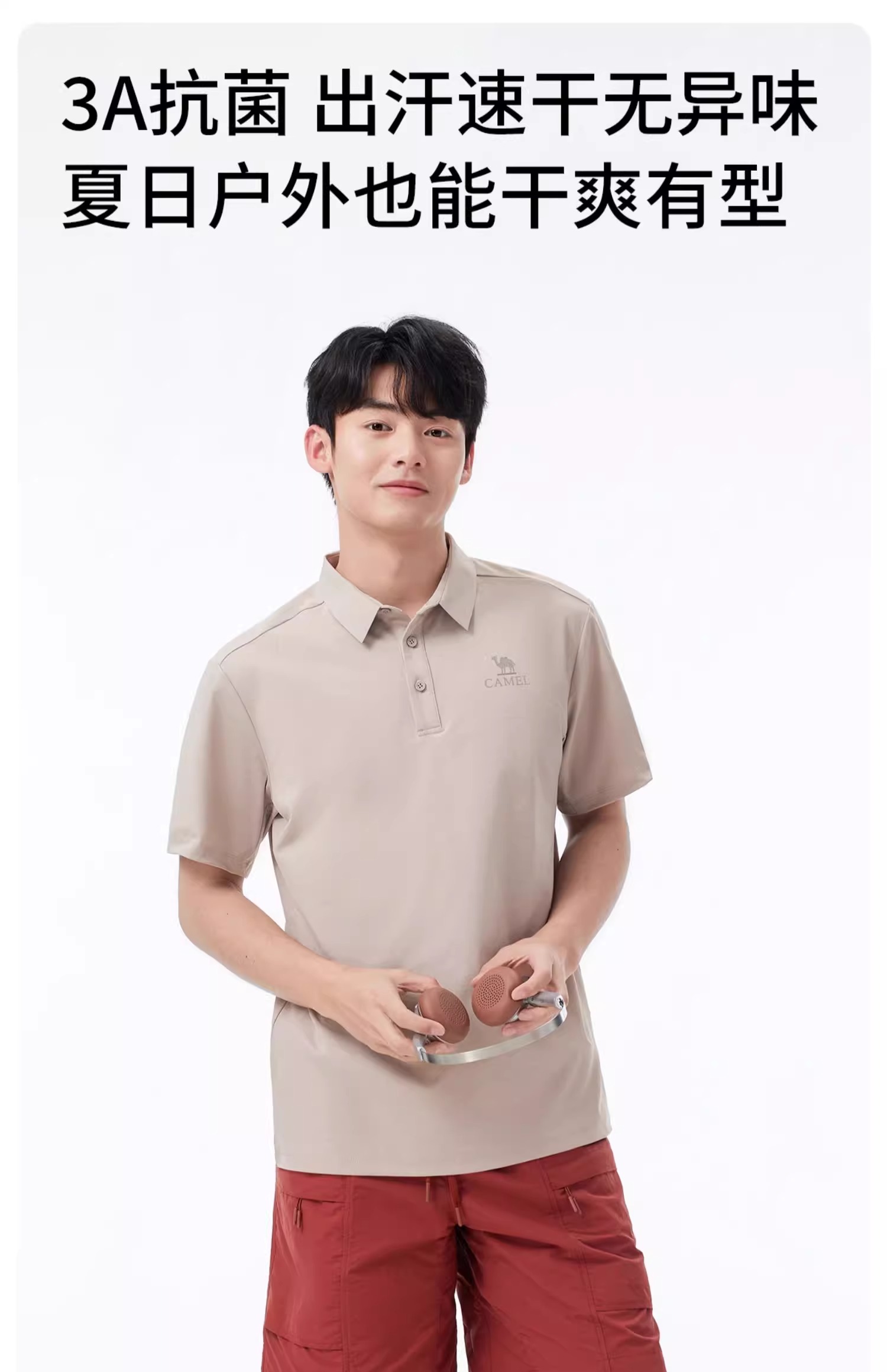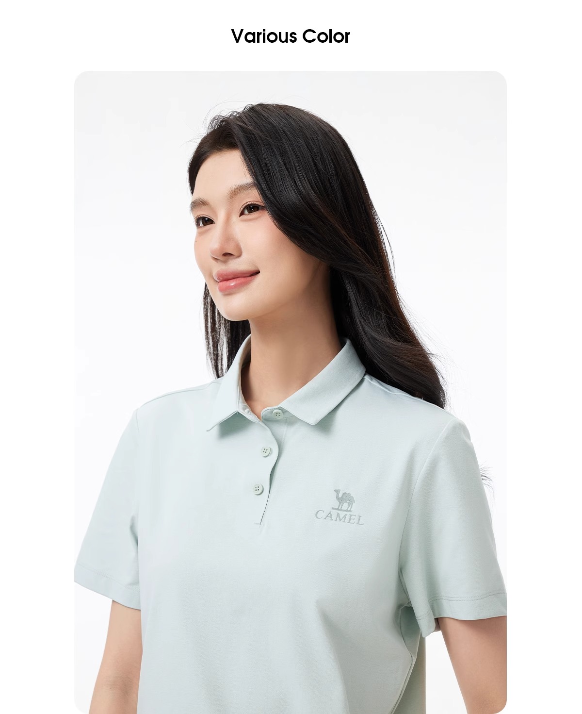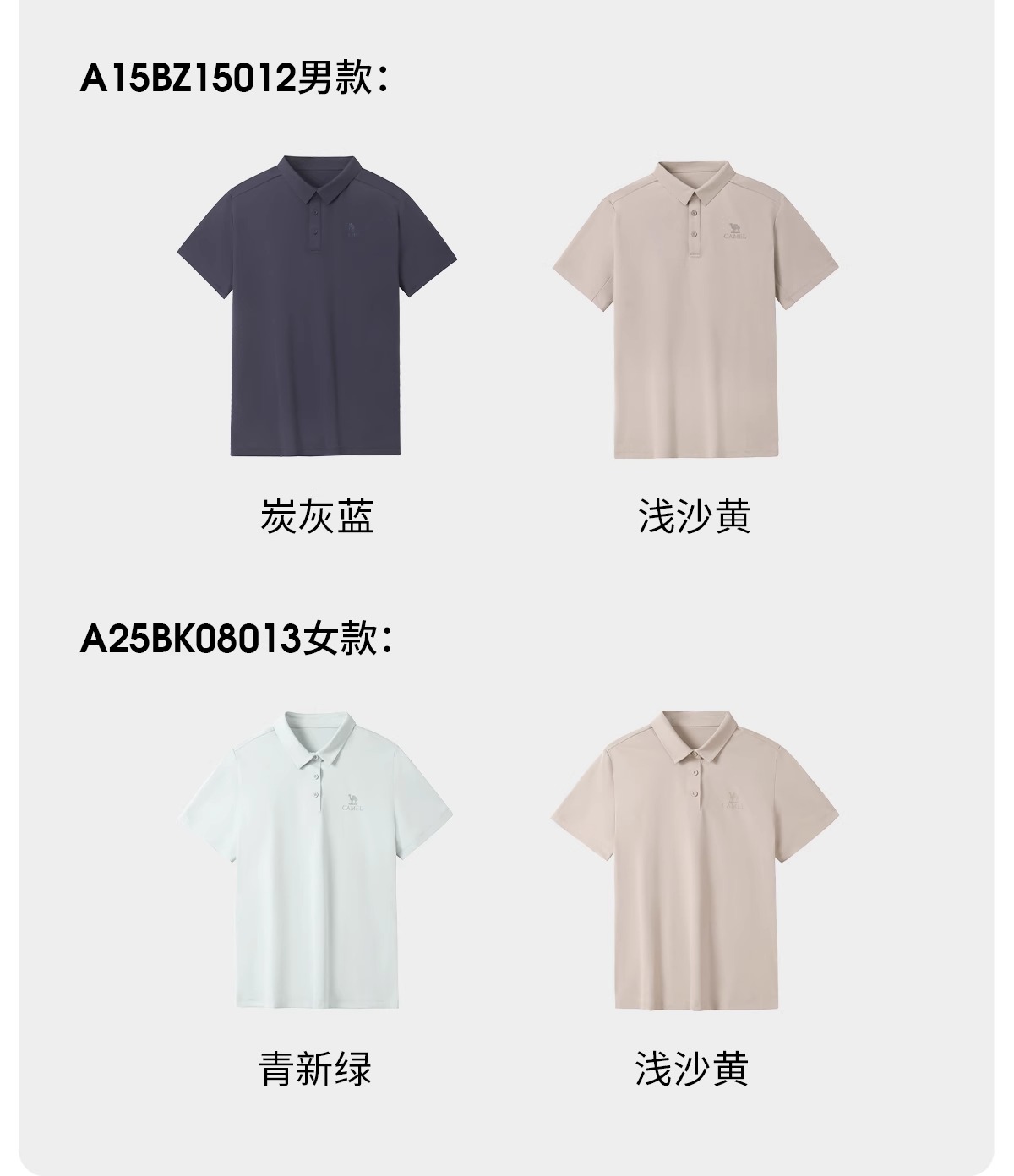 CAMEL骆驼 户外速干T恤 男女款夏季防晒短袖POLO衫弹力抗皱上衣 青新绿-女款 A25BK08013